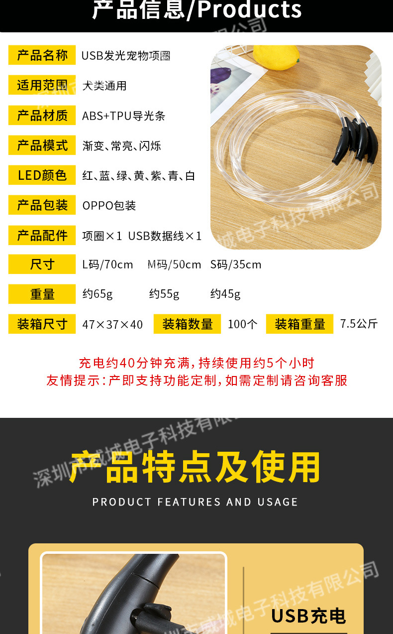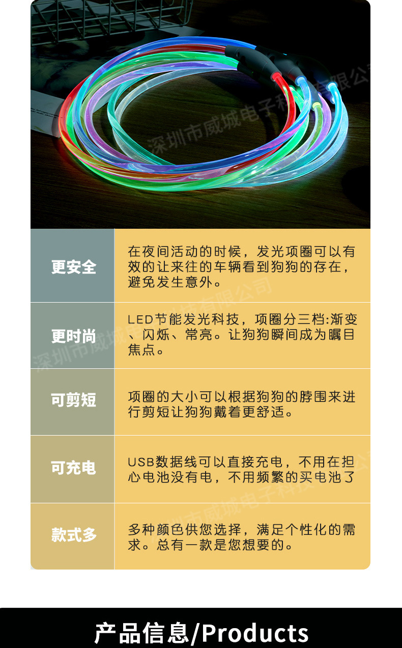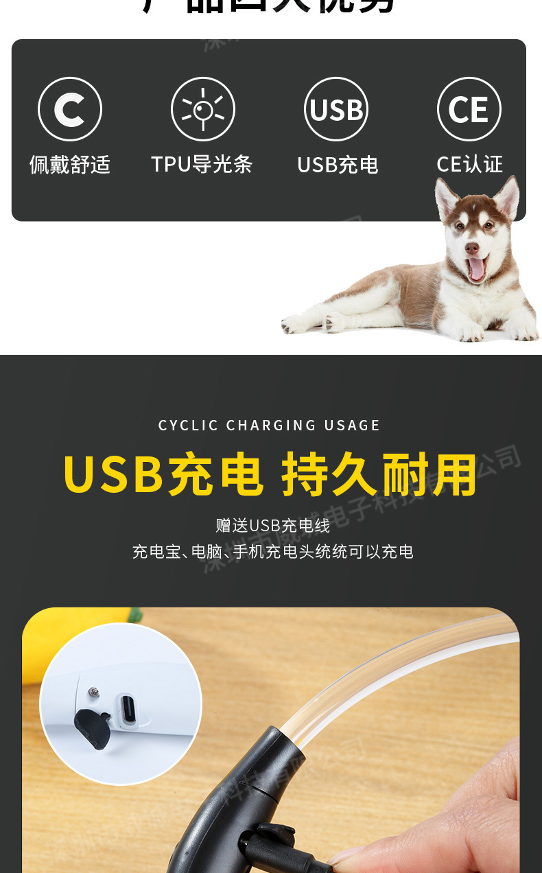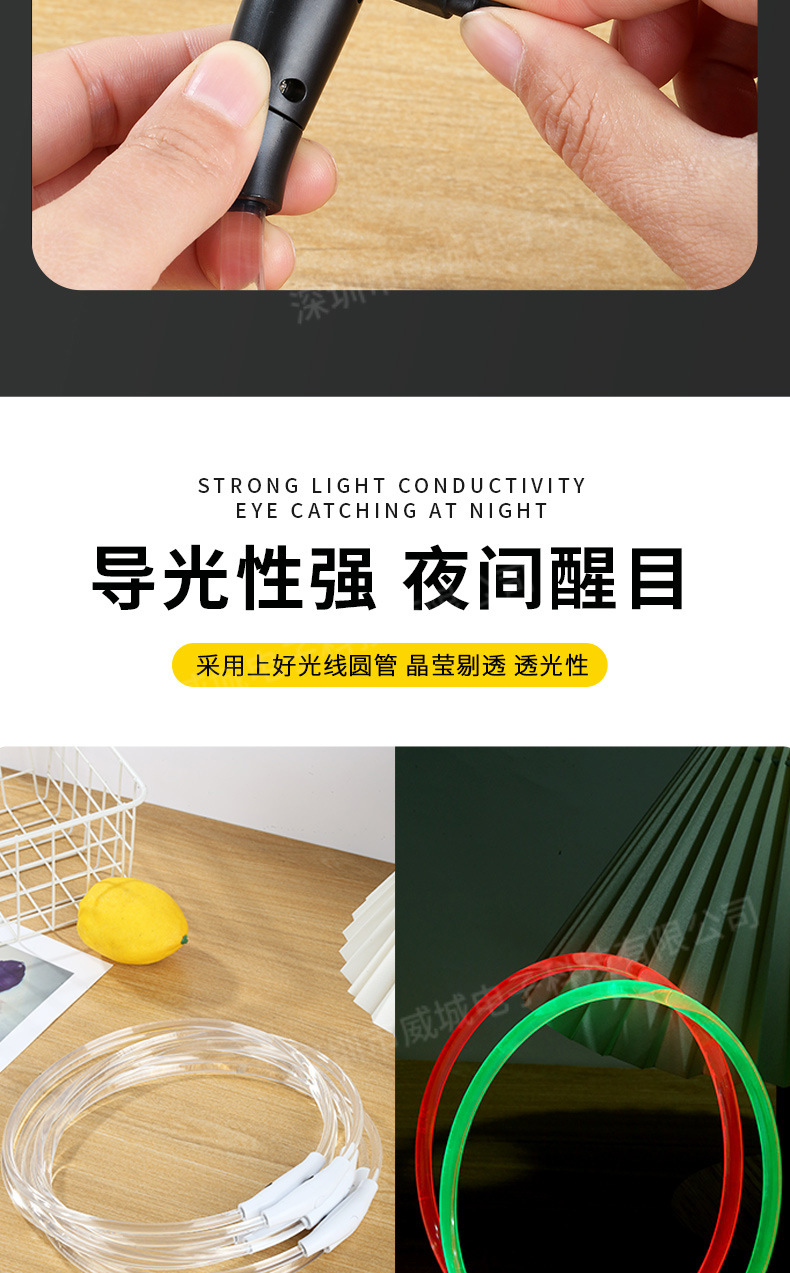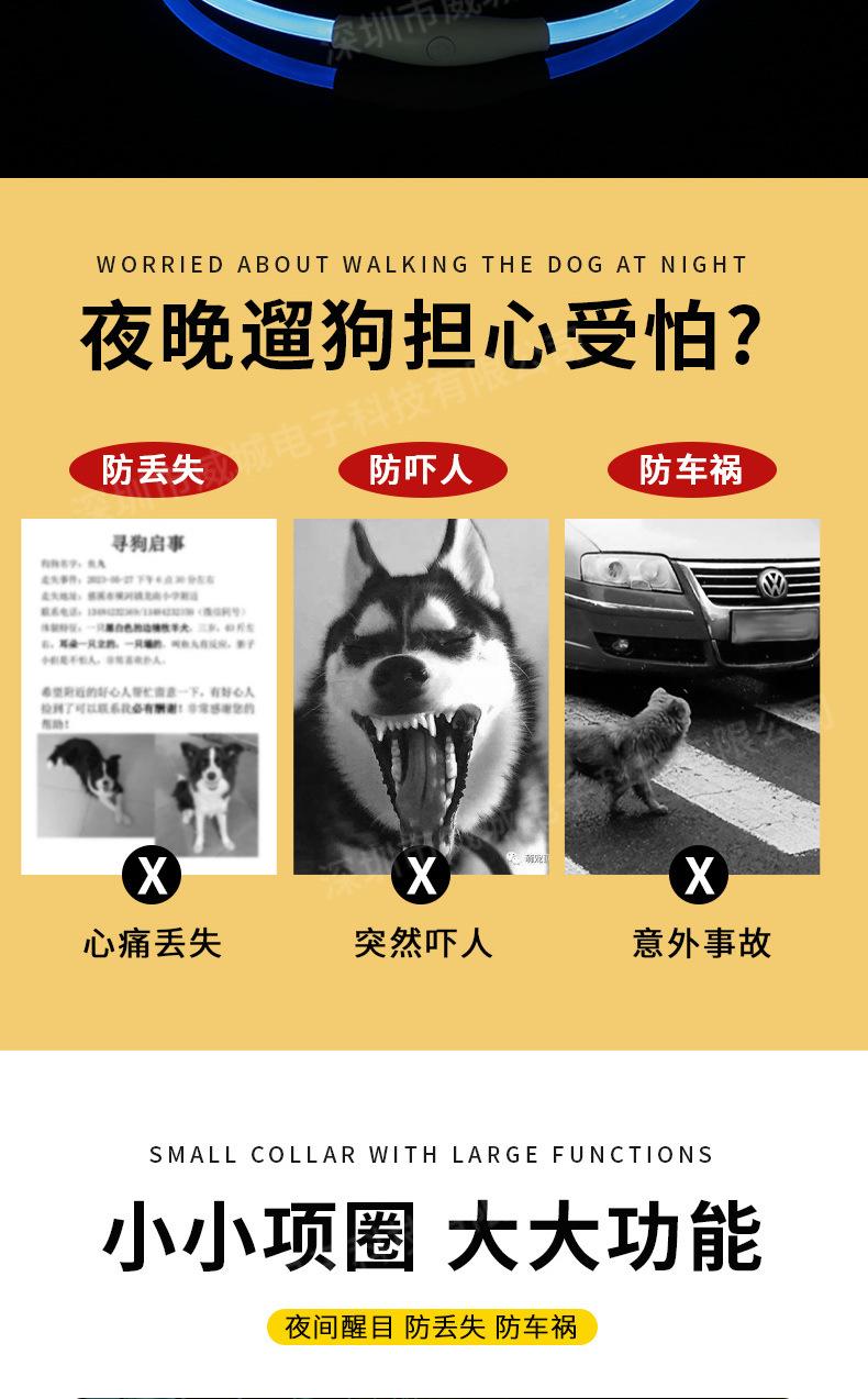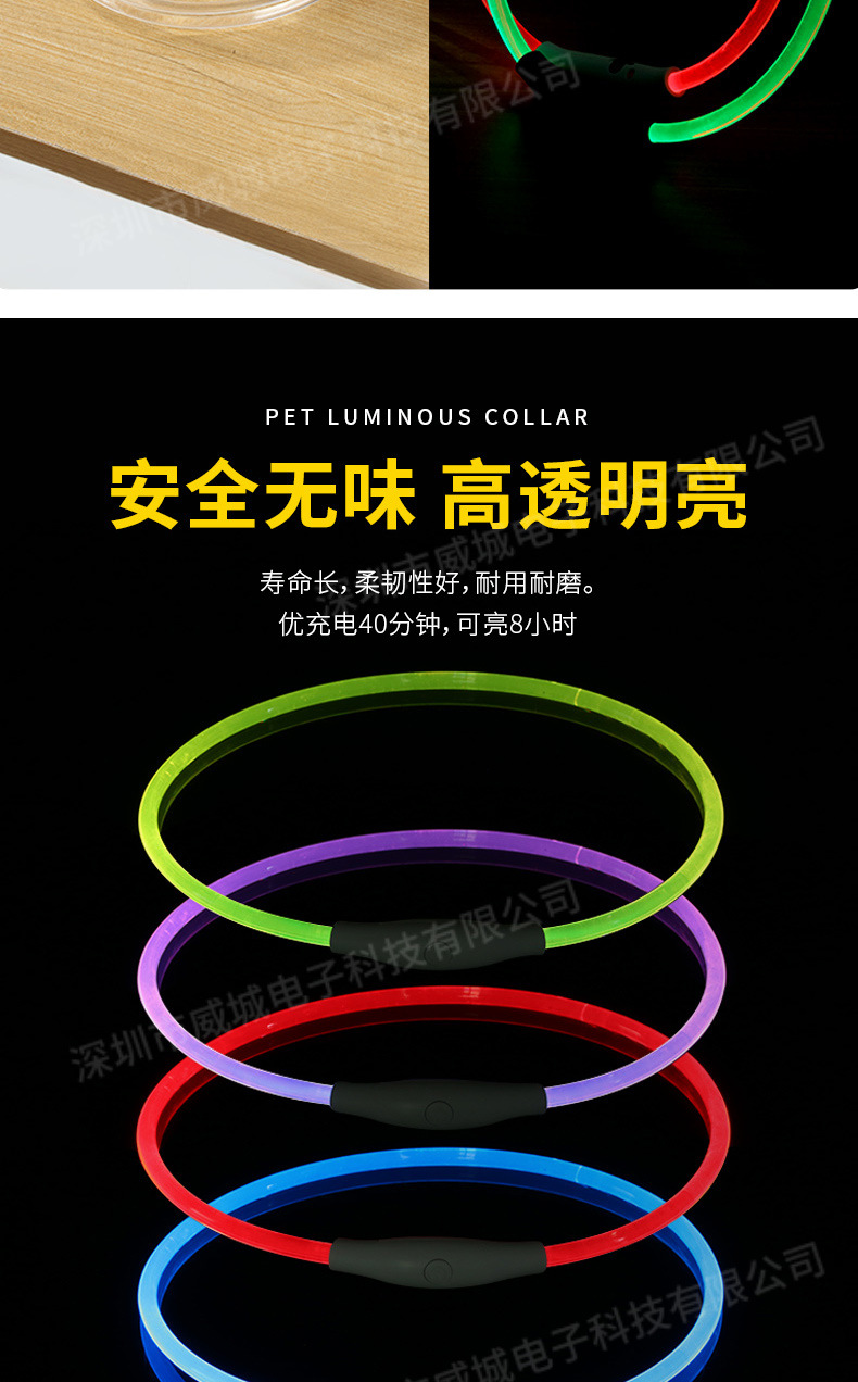 狗狗发光项圈夜间遛狗夜光夜行灯大小型犬防走失带灯充电宠物脖圈