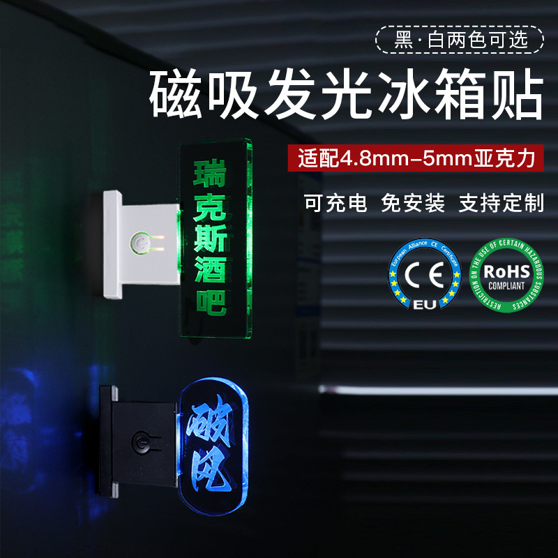 跨境热销新款创意磁吸发光冰箱贴 LED亚克力灯牌充电款发光冰箱贴