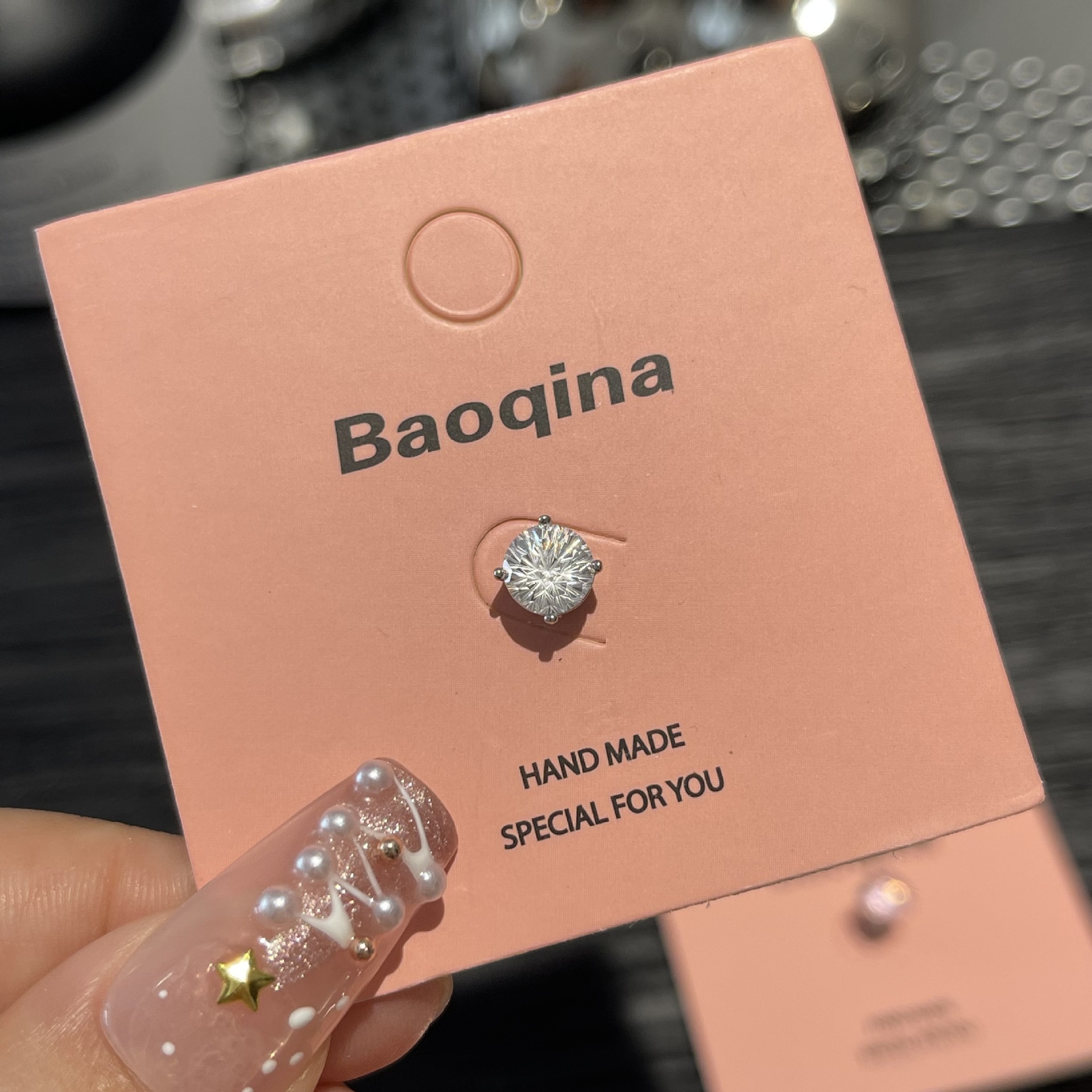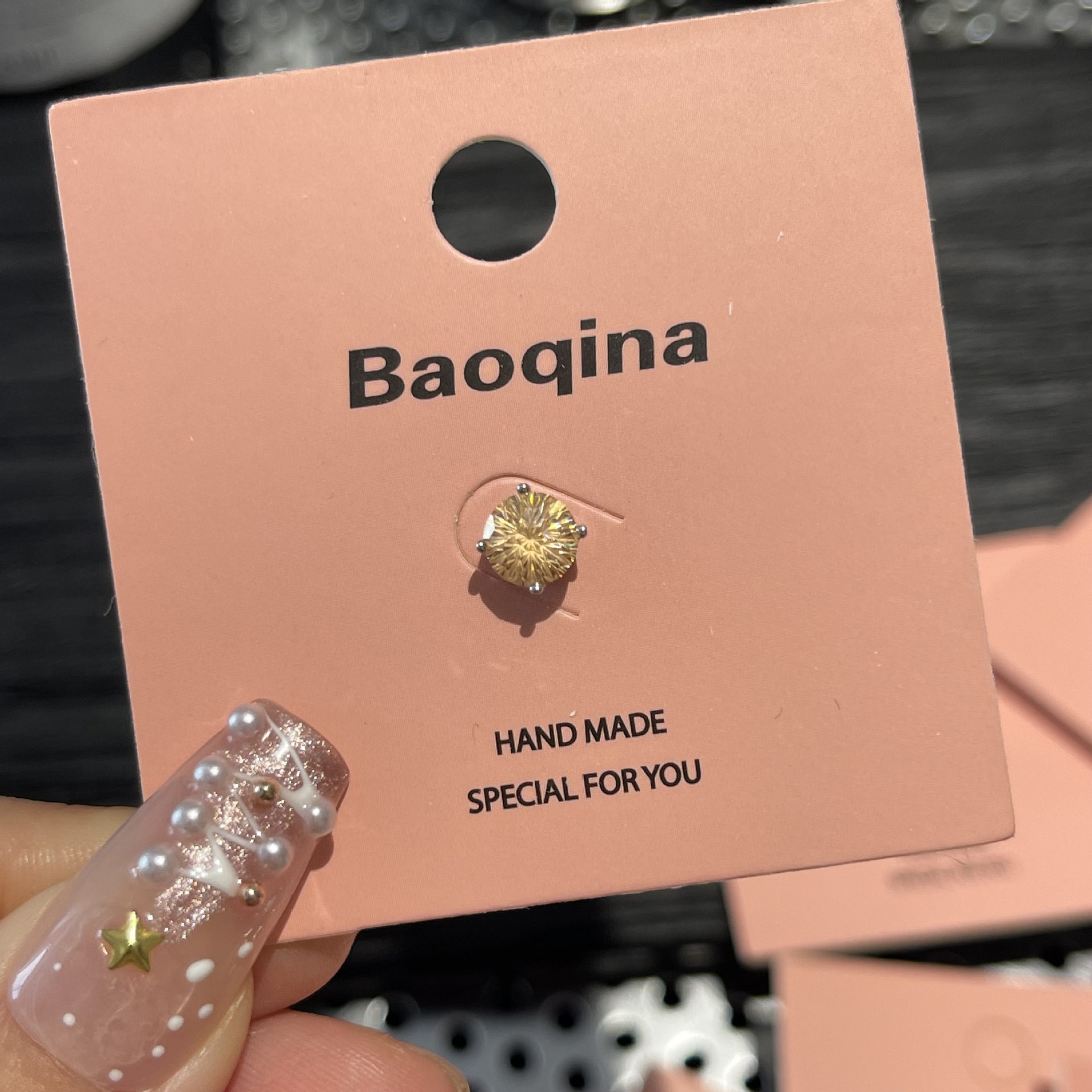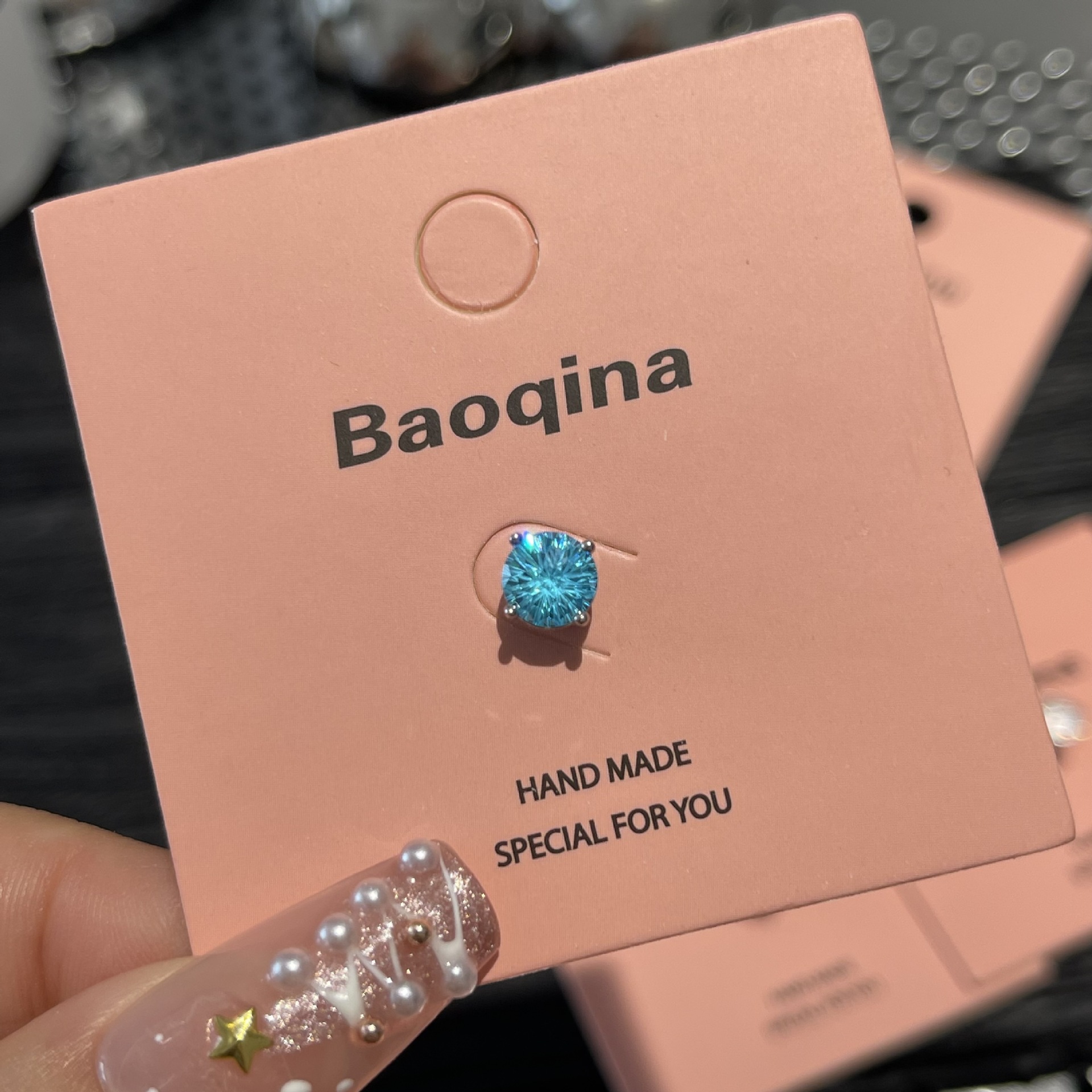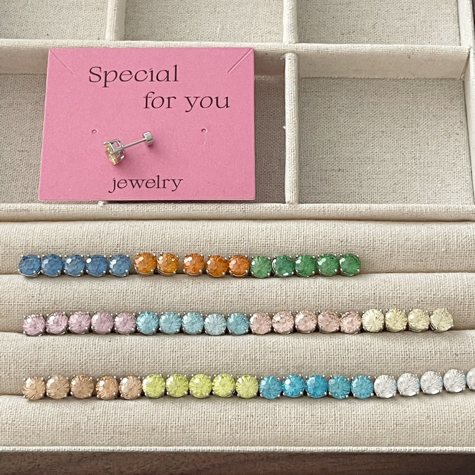 ジルコンのイヤリングを少し入れて、イヤリングの雰囲気を明るくします。