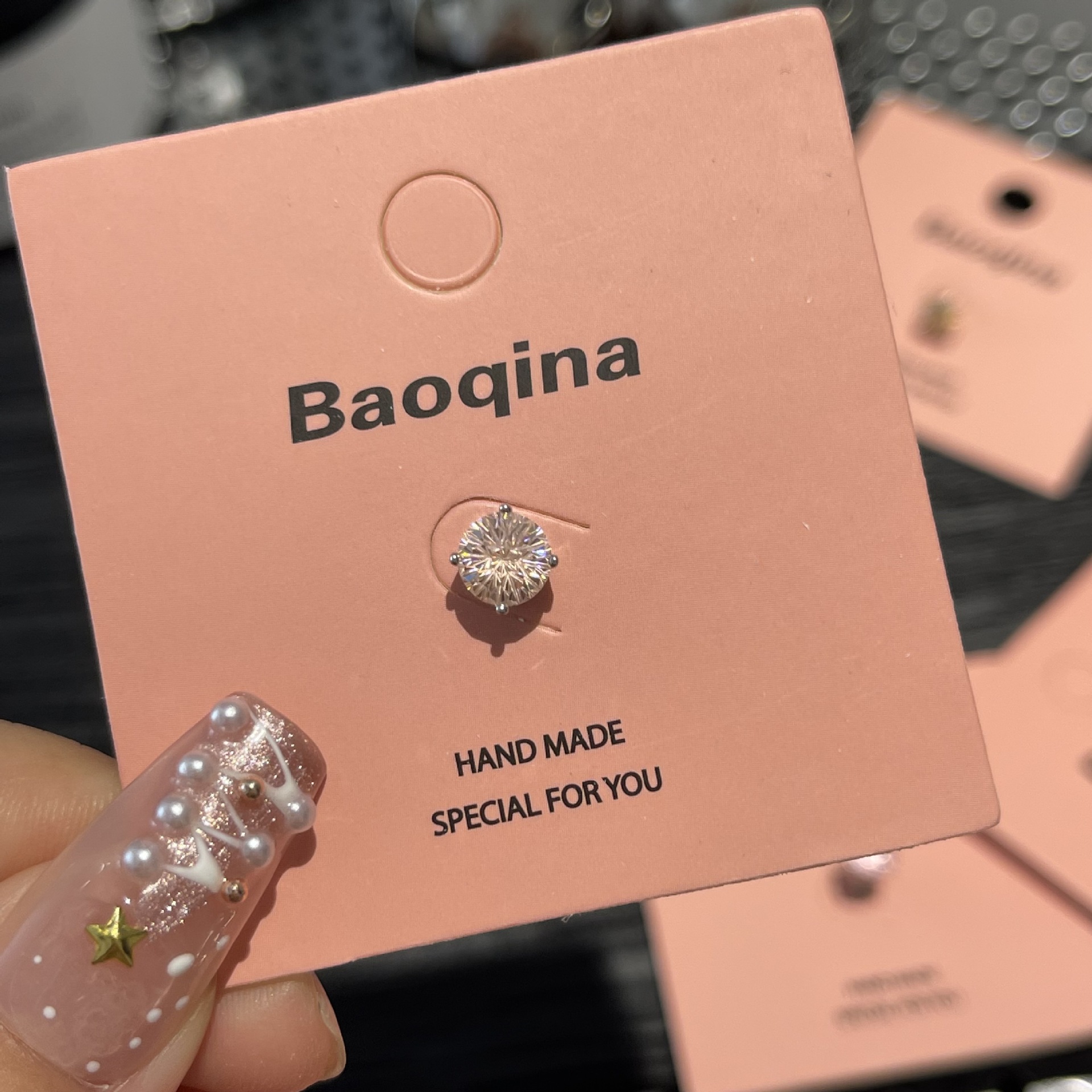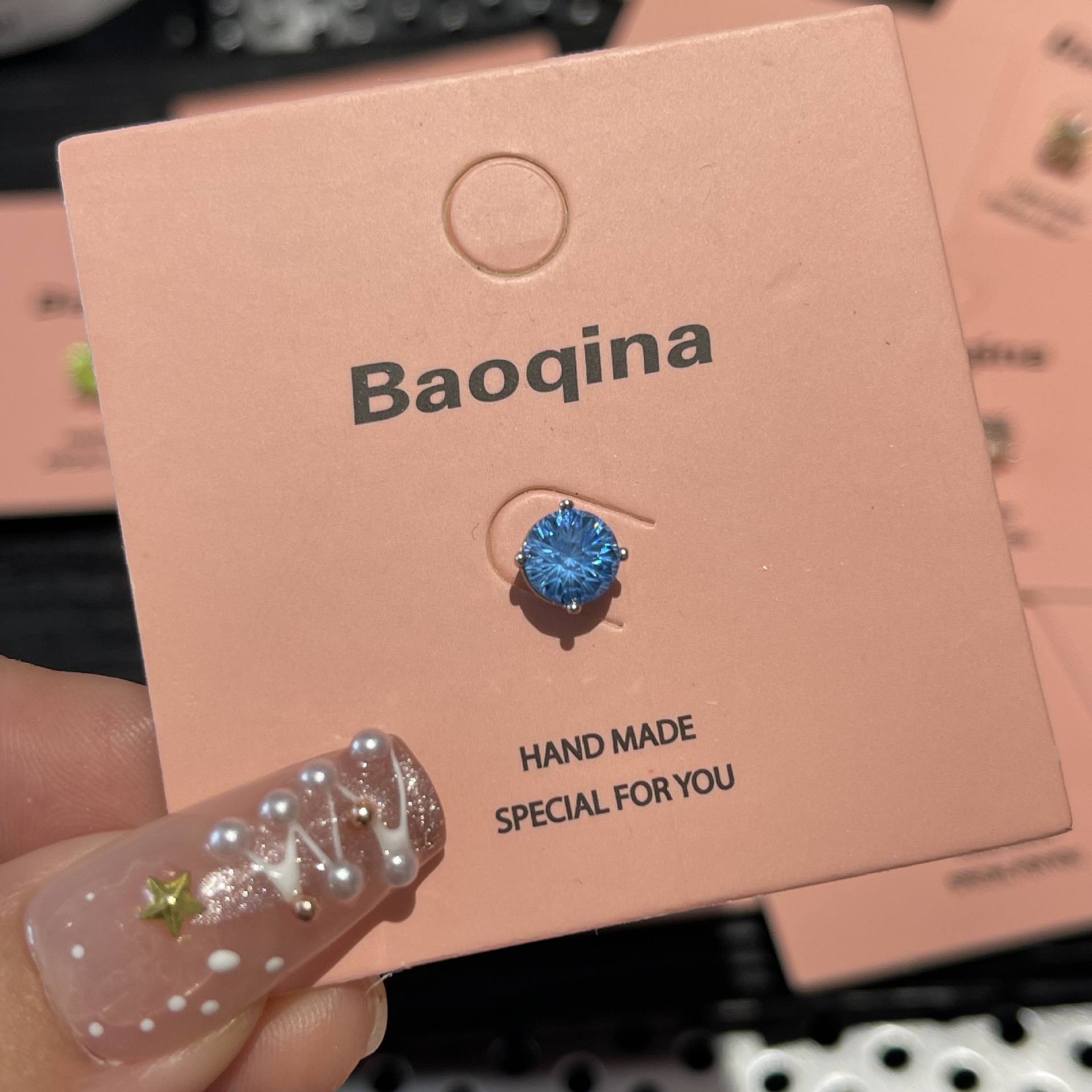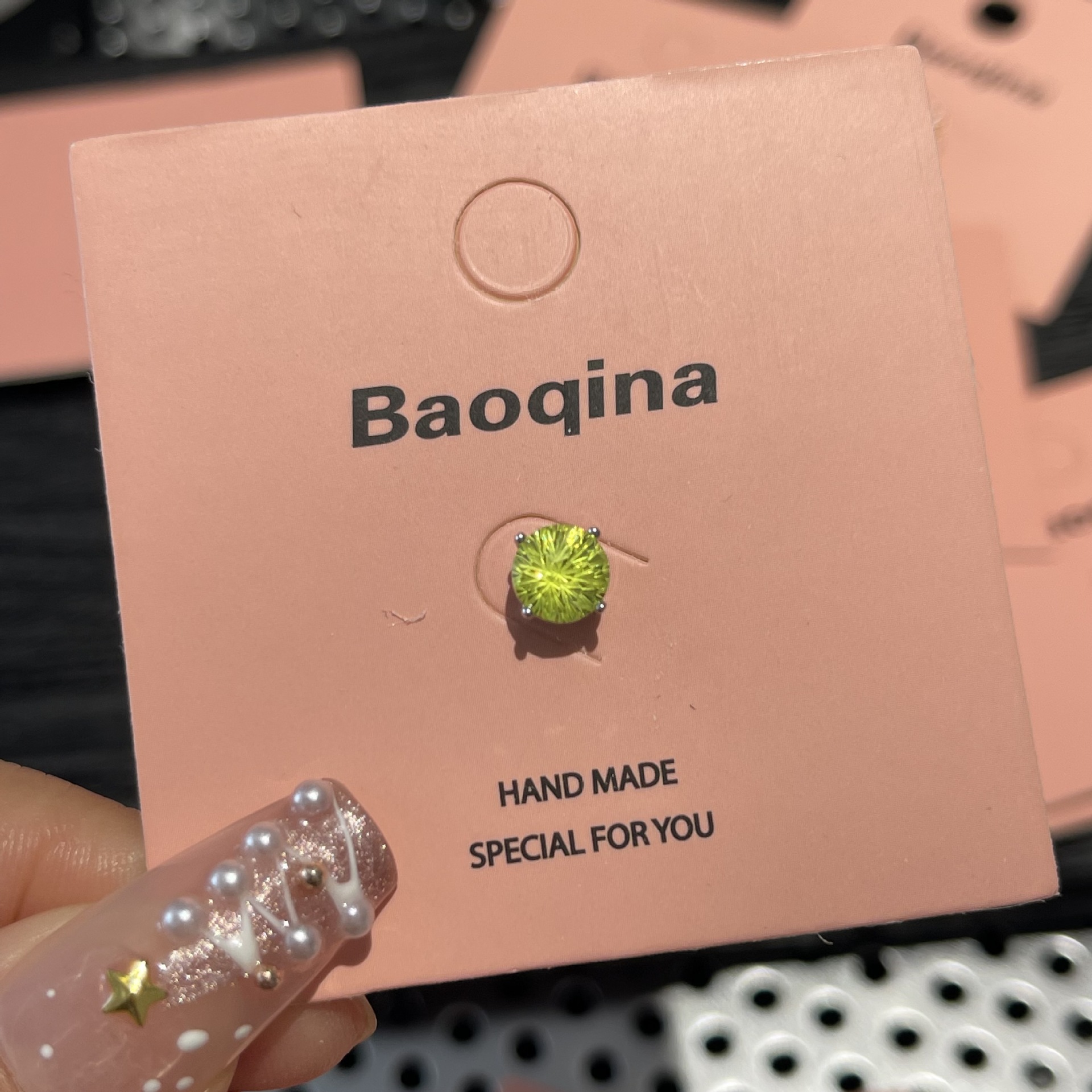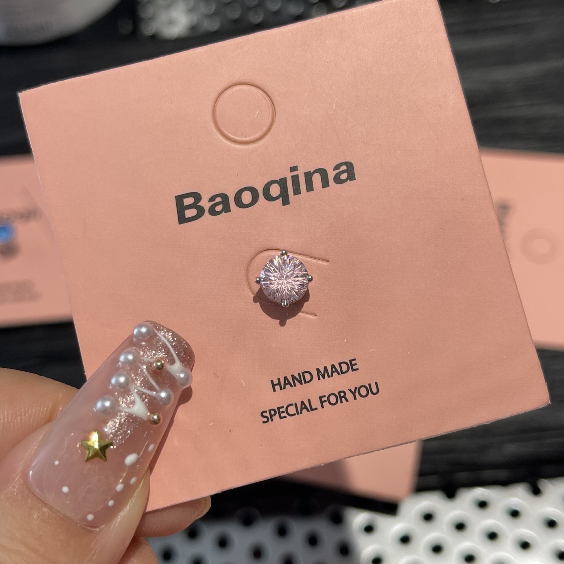 ジルコンのイヤリングを少し入れて、イヤリングの雰囲気を明るくします。