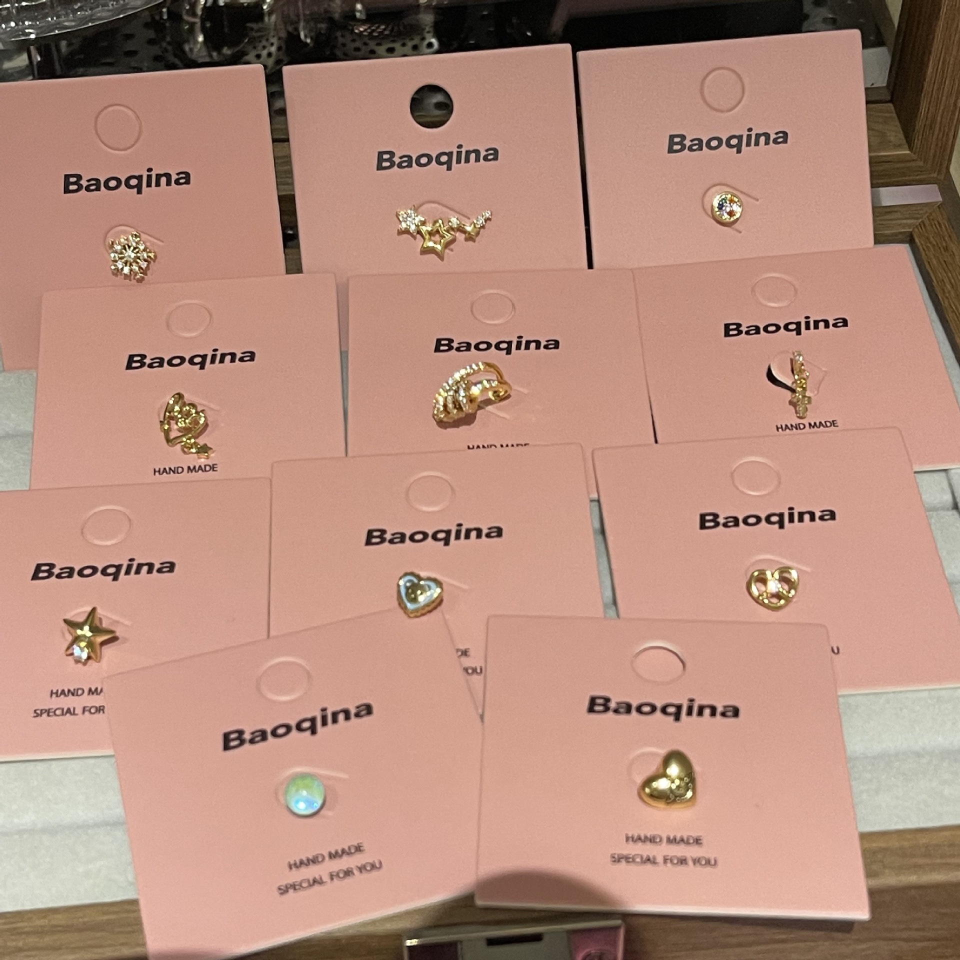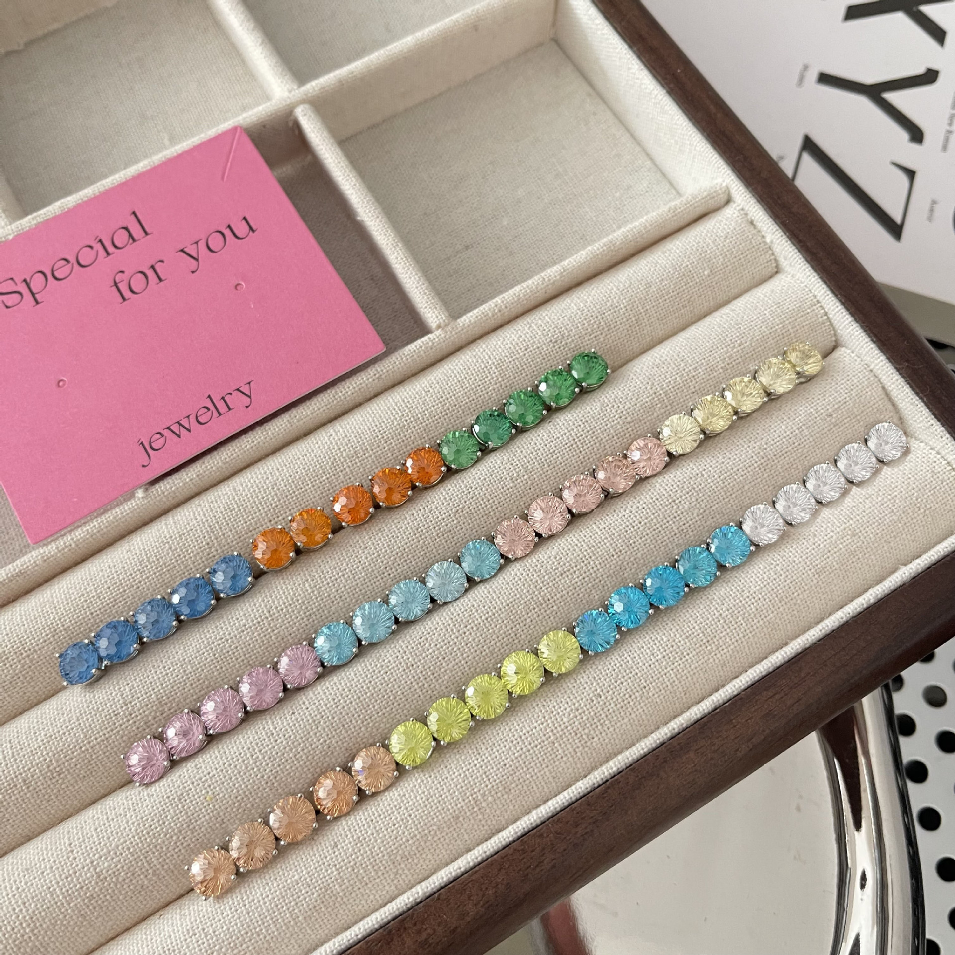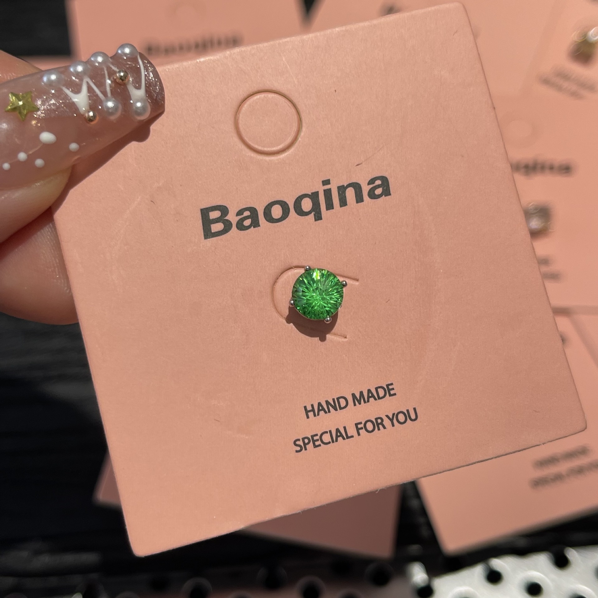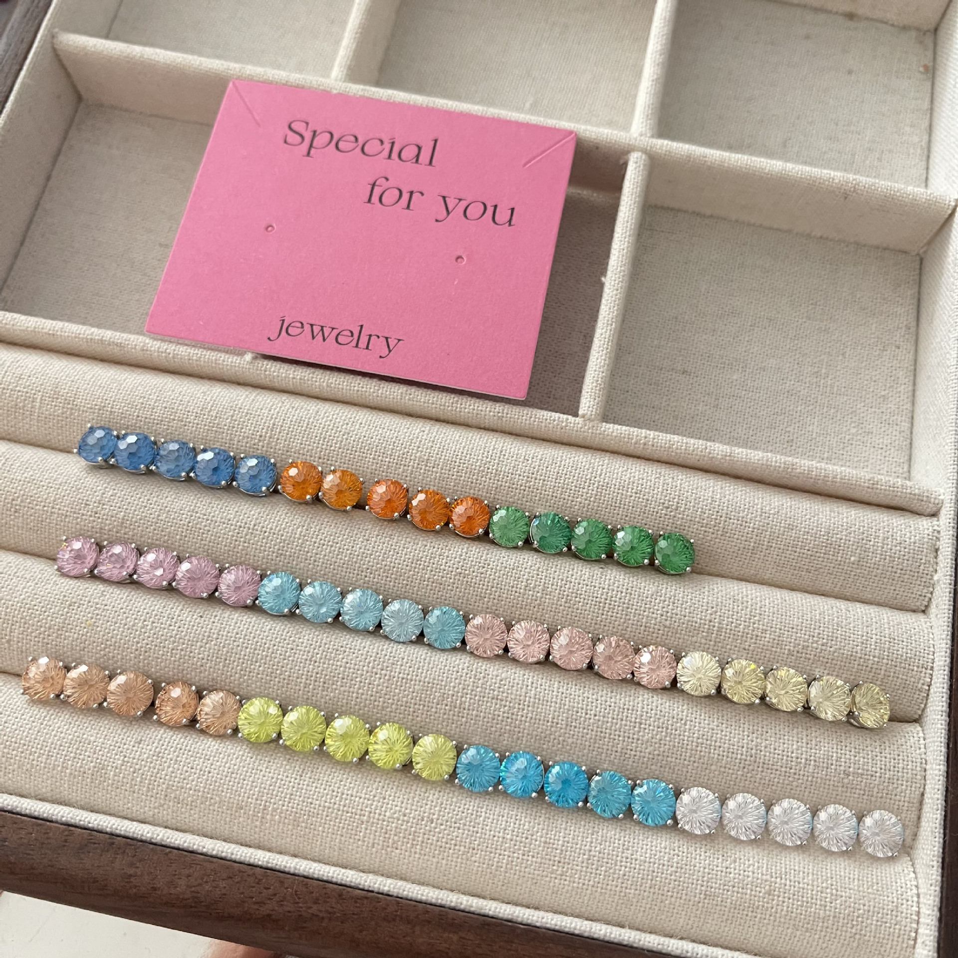 ジルコンのイヤリングを少し入れて、イヤリングの雰囲気を明るくします。