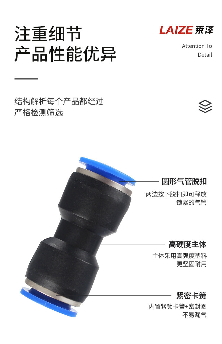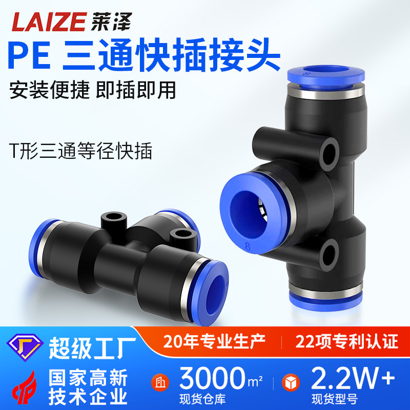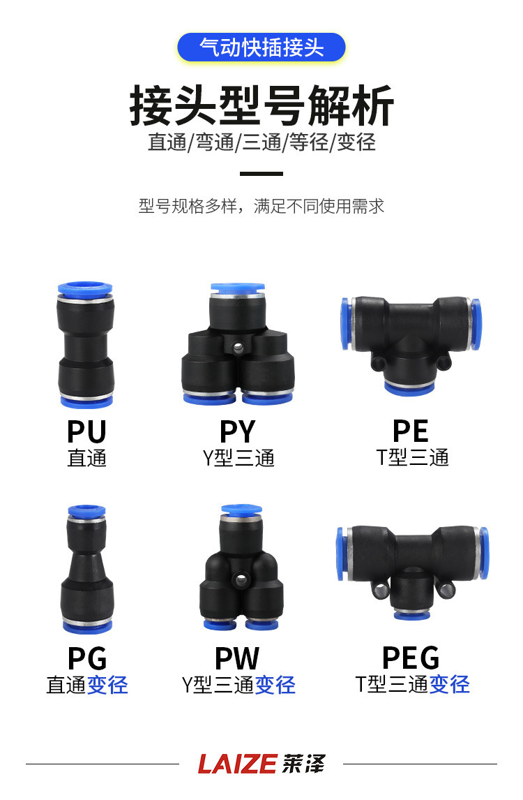 PUジョイント直通エアチューブクイックPE三通PG変径ホース空気圧PK五通クイックプラグ接続クイックジョイント