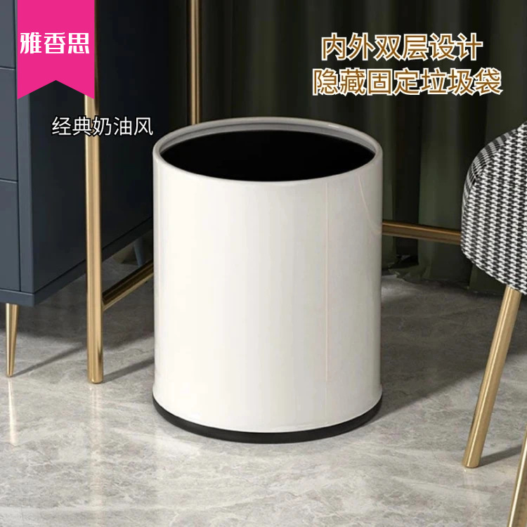 ステンレス客室ゴミ箱家庭用オフィスホテルホテルktv金色ゴミ箱円形二重蓋なし