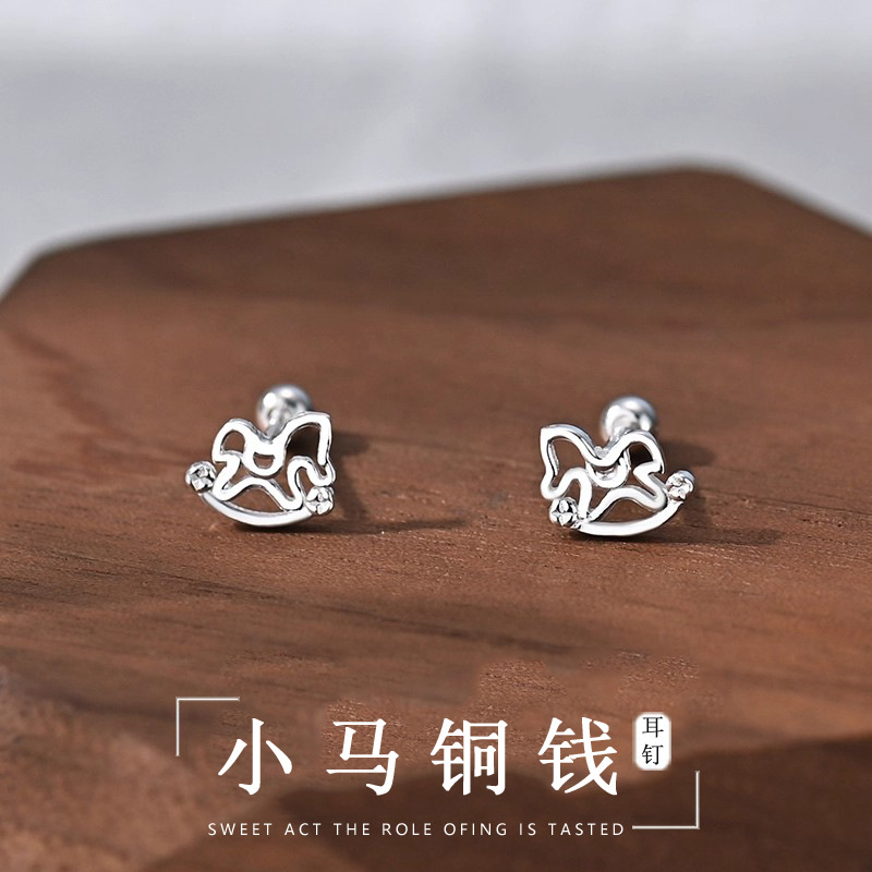 小马铜钱耳钉女螺丝设计感高级轻奢气质小众高级感耳饰新款爆款