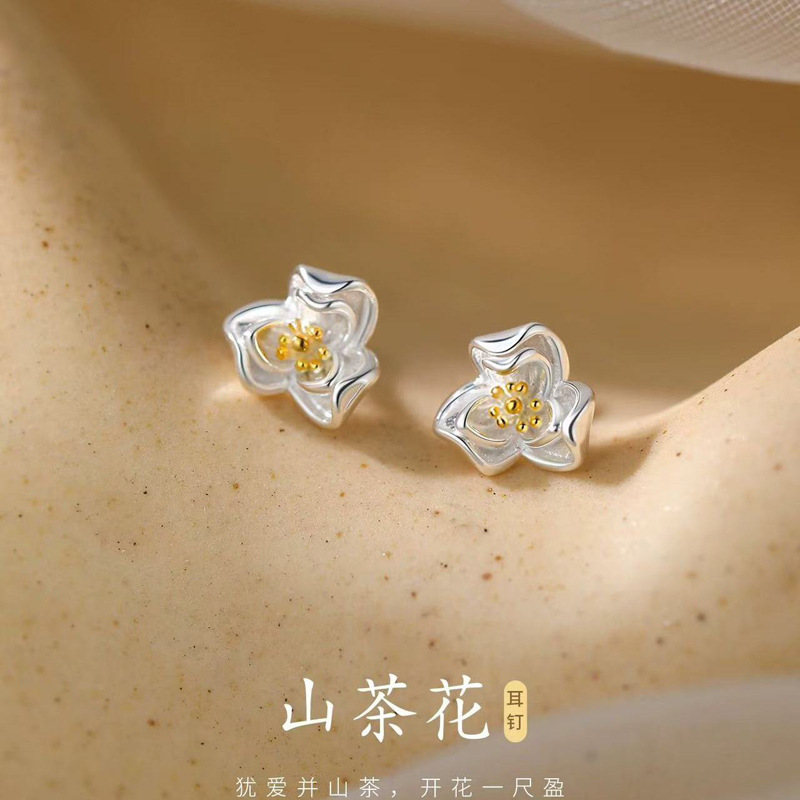 山茶花耳钉轻奢精致淑女日常通勤百搭气质小众设计感高级新款耳饰