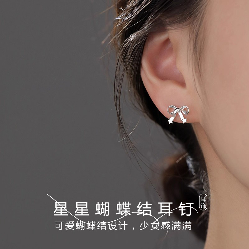 星光丝带蝴蝶结耳钉女韩系甜美可爱百搭耳骨钉小众清新高级感耳饰