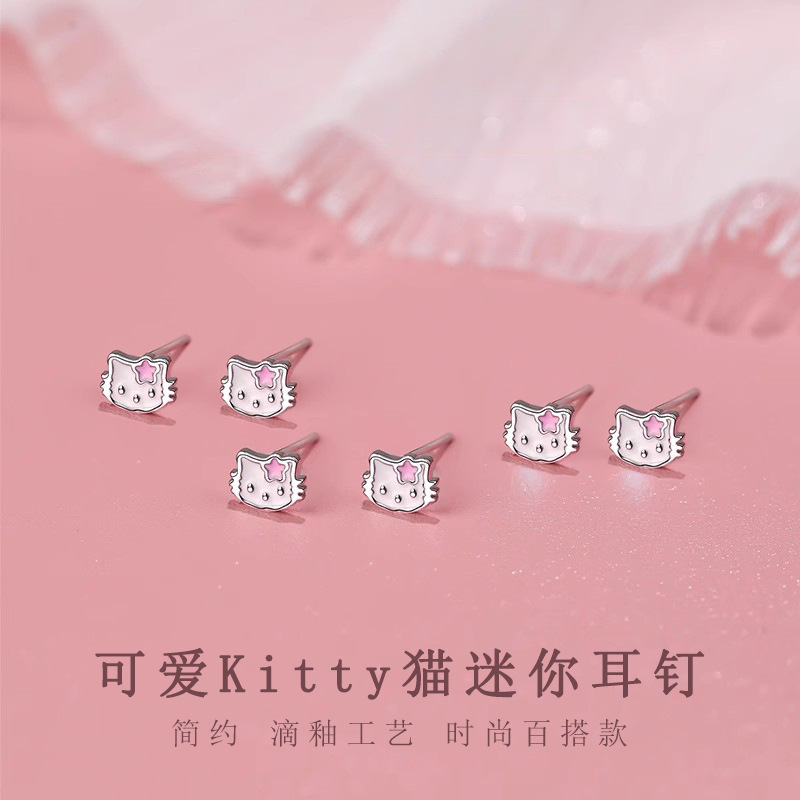 Kitty猫耳钉女小众设计高级感甜美可爱耳环简约百搭送姐妹耳饰品