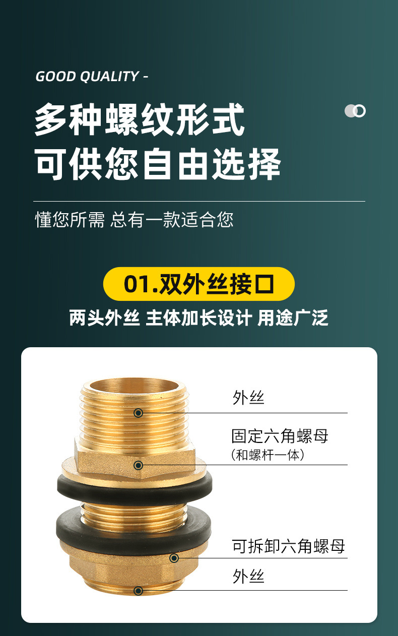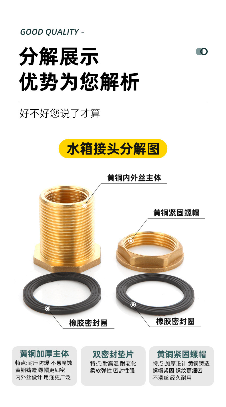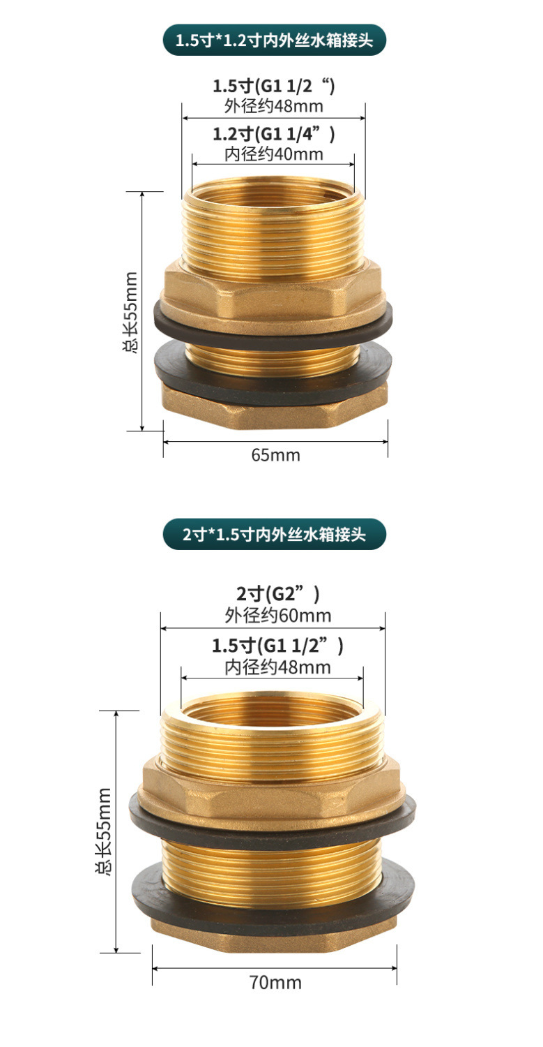 真鍮内外糸水タンク継手3/4/6分1インチインターフェース厚さ延長水塔池水槽バケツ部品