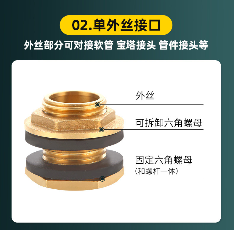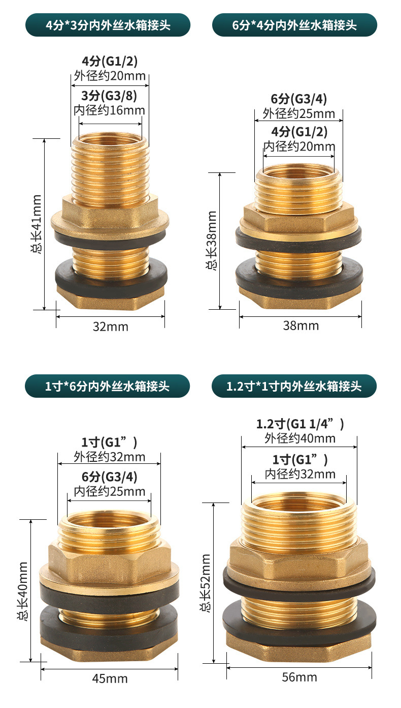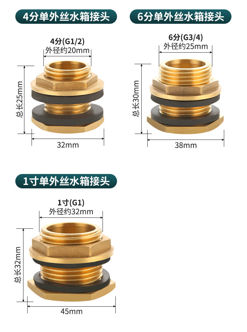 4分内外糸水タンク継手銅3/6分1インチ水塔池水槽バケツ延長排水インターフェース部品