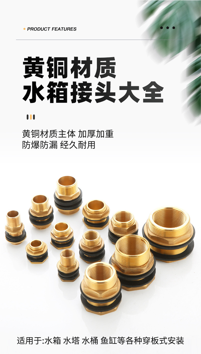 マット付き真鍮水タンク継手4分/6分/1インチ内外糸タンク水塔プール水タンク入水口
