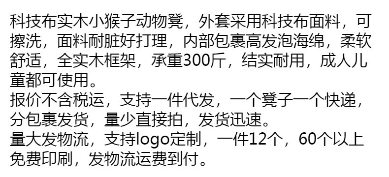 かわいい猿の子供の腰掛けの科学技術の布の木のソファーの腰掛けのネットの赤い動物の腰掛けの家庭用の成人は靴の腰掛けを交換します。