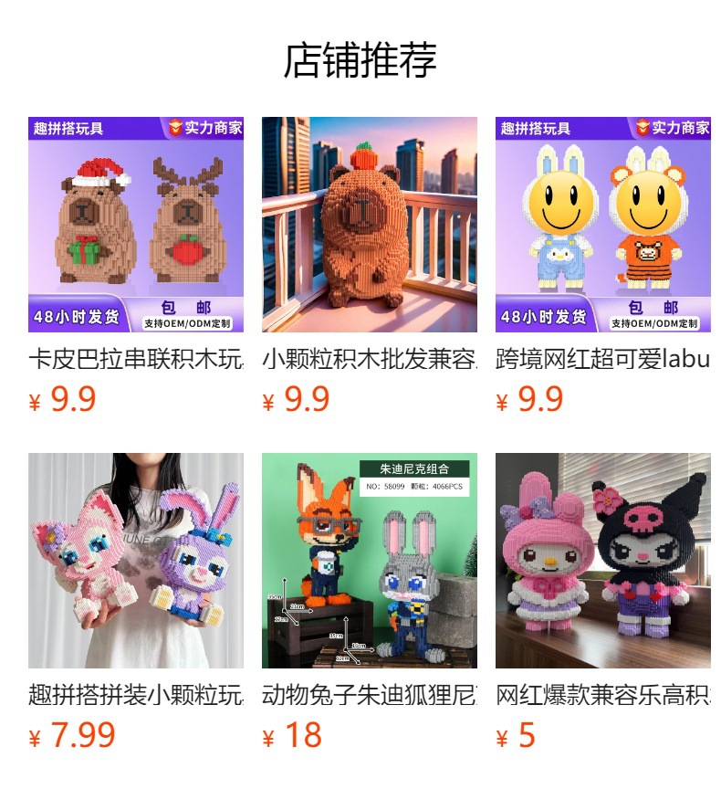 カピバラ連結ブロック玩具越境卸売露店子供手作り組み立て飾り立体パズル流行玩具