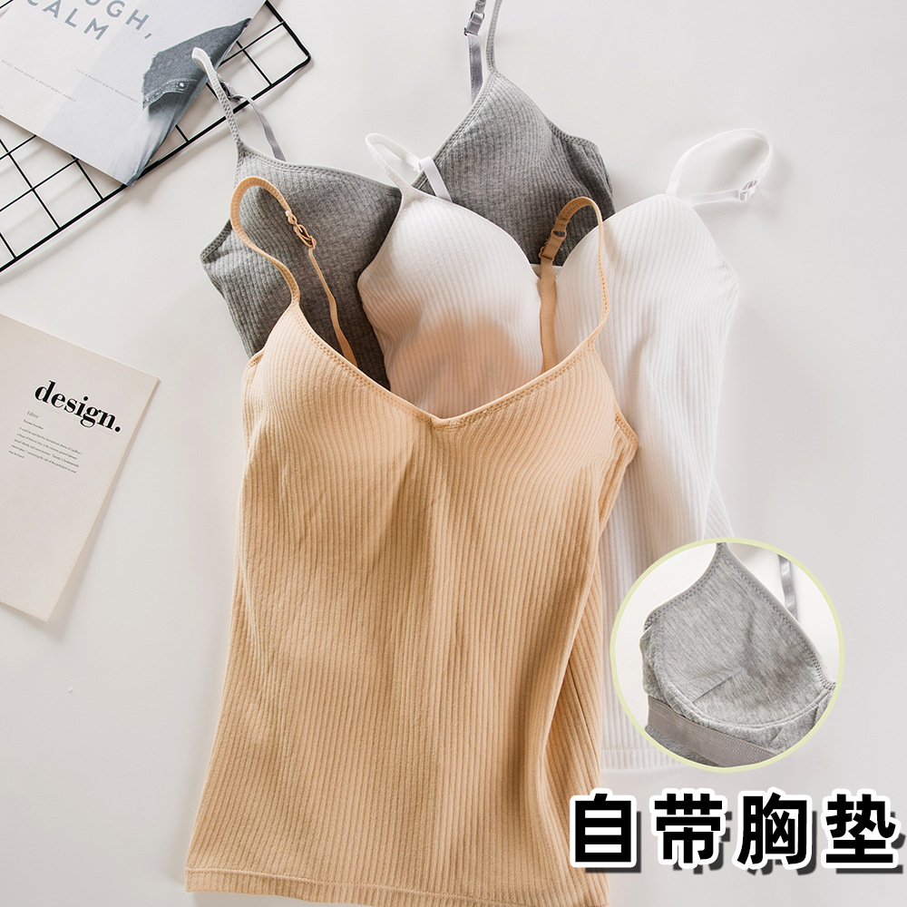 ねじ綿は胸パッド付きのキャミソールを持っています。女性の夏vネックは痩せています。