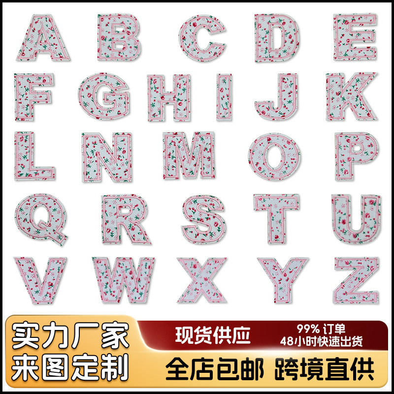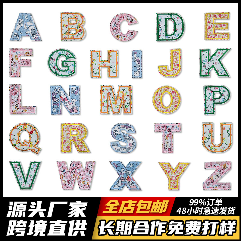 字母装饰配件彩色字母绣花贴英文字母服装辅料装饰粉碎花配件