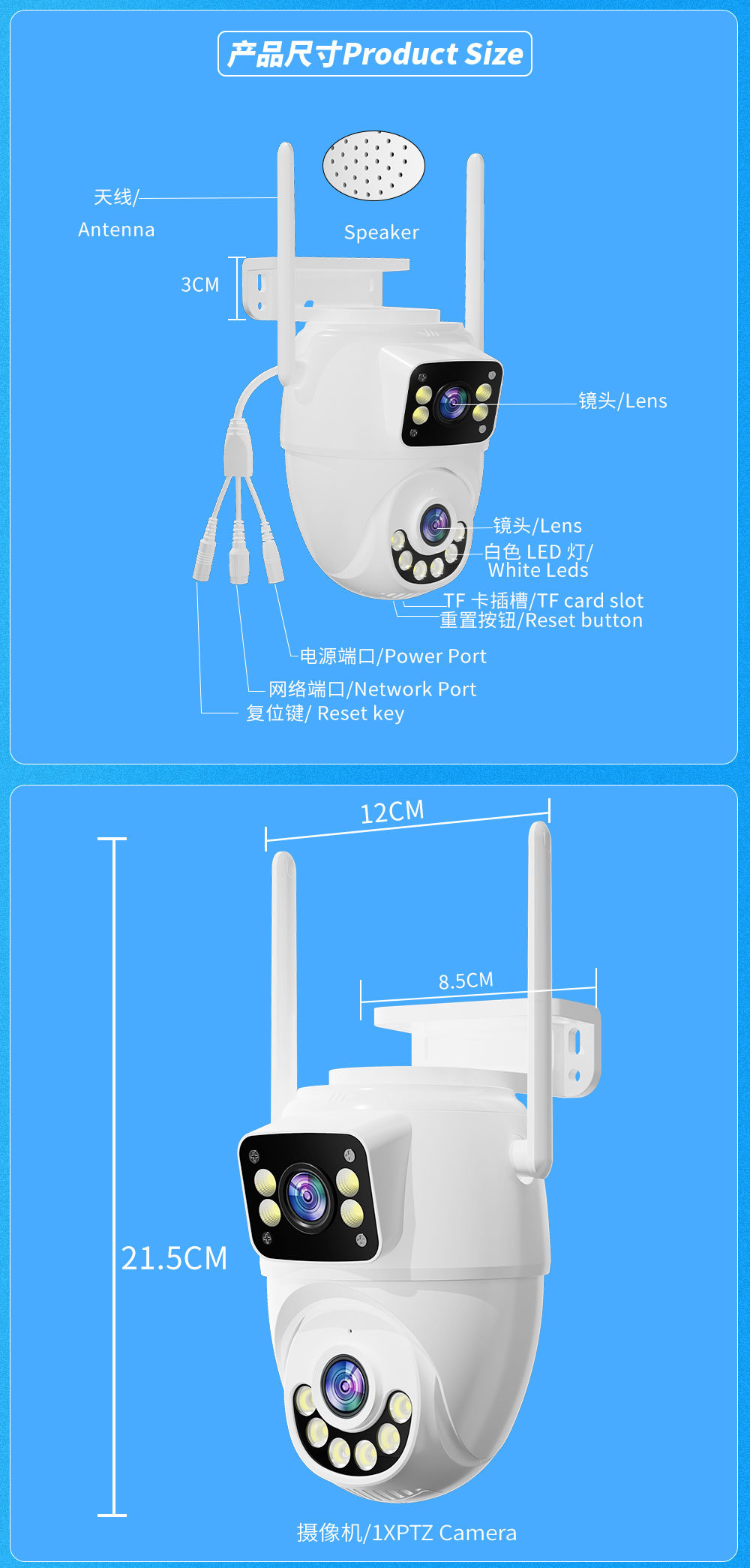 室外监控摄像头家用无线监控器360度可夜视高清户外防水云台枪机