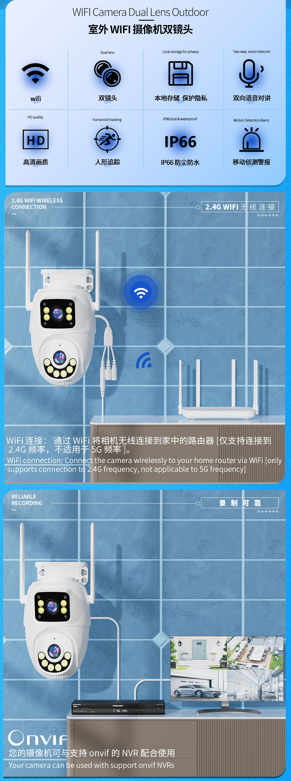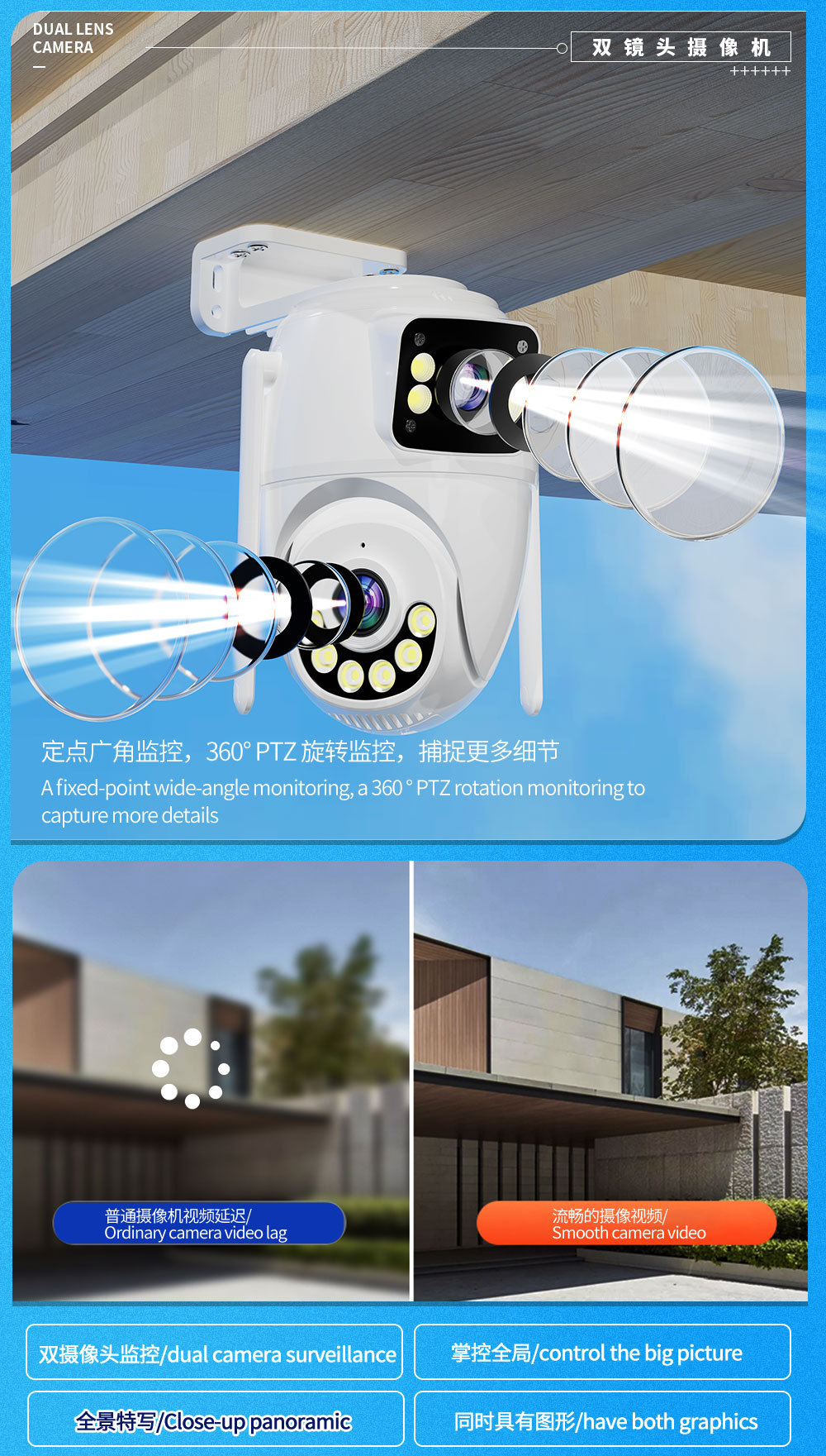 クロスボーダー爆金ハイビジョンモニタースマート無線wifi家庭用遠隔夜間監視カメラ機デュアル画面