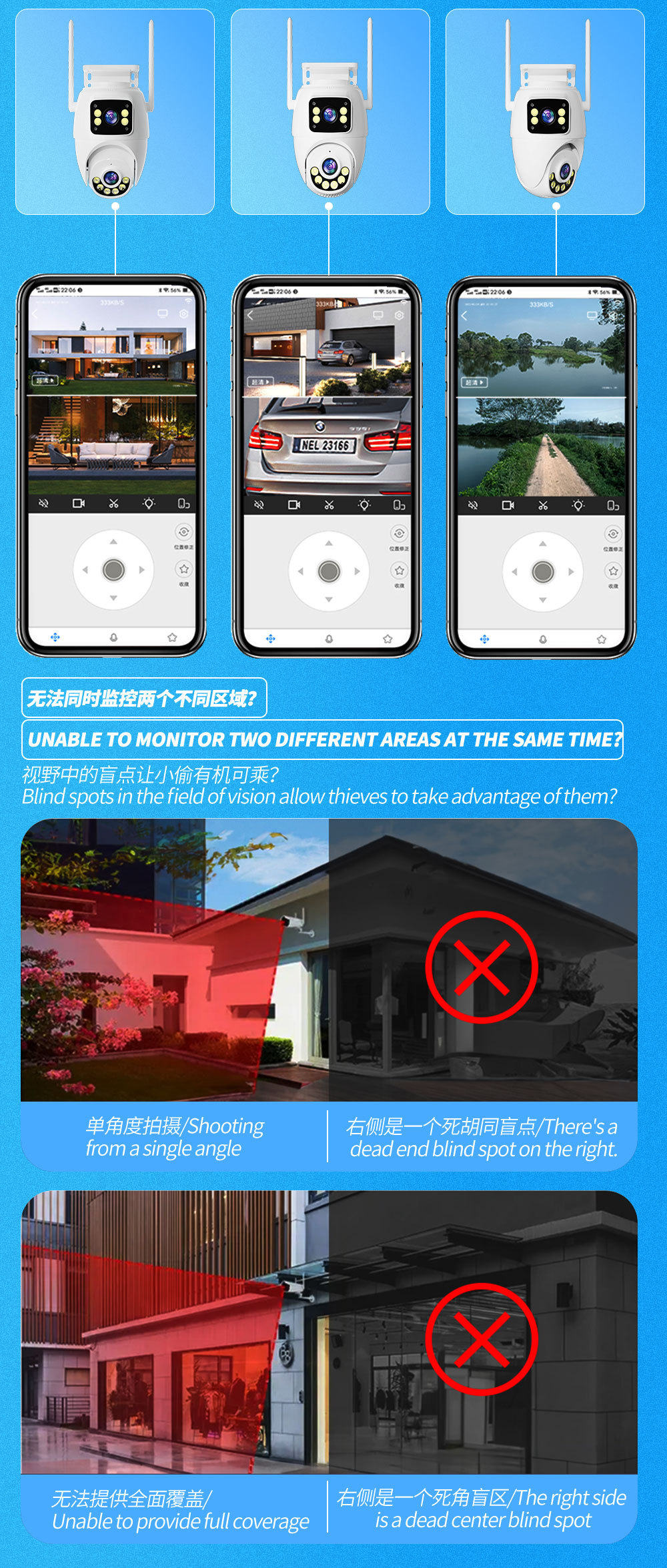 V380 三画面ビデオ監視カメラ wifi版 4G 三眼超高画質屋外防水監視カメラ