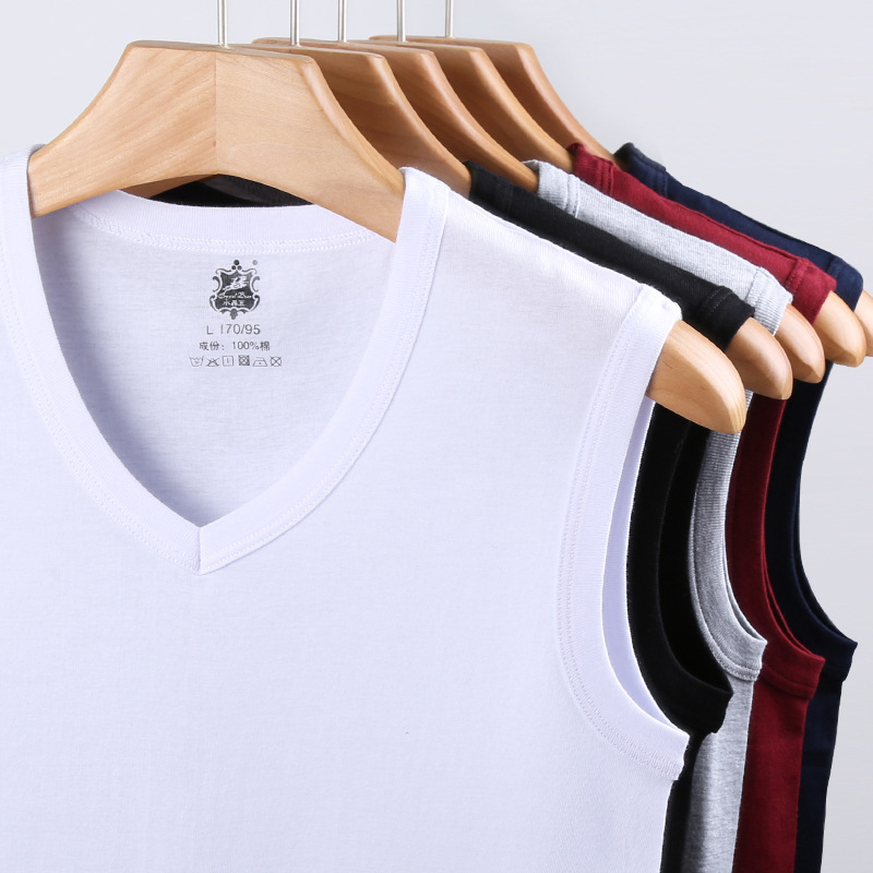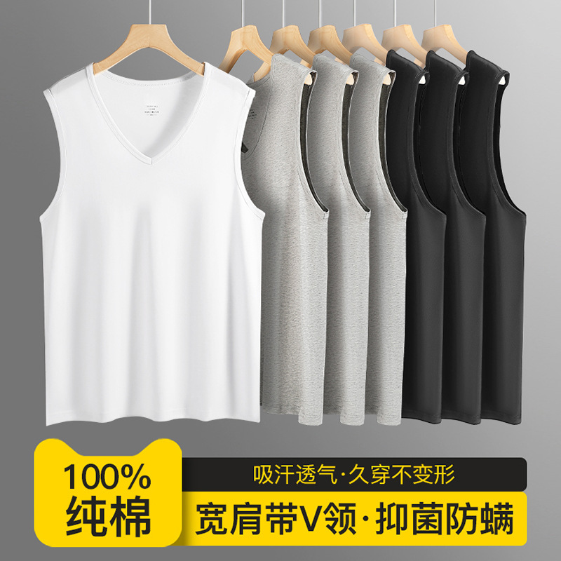 【3件装】男士V领背心纯棉内穿运动全棉内衣宽肩春夏季打底汗衫