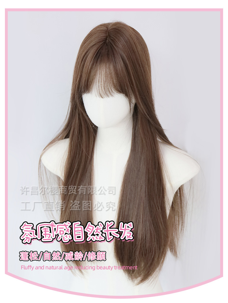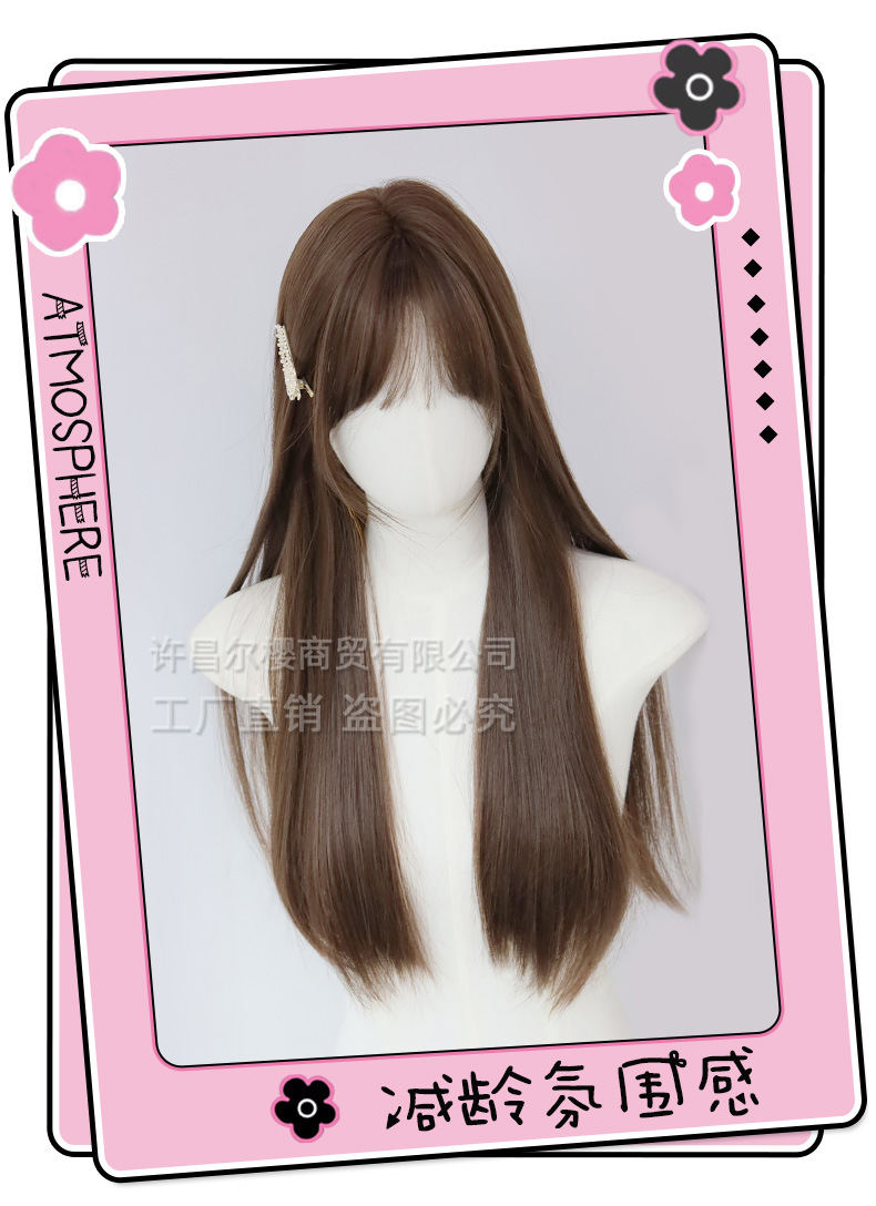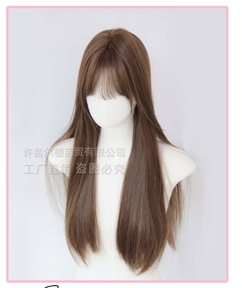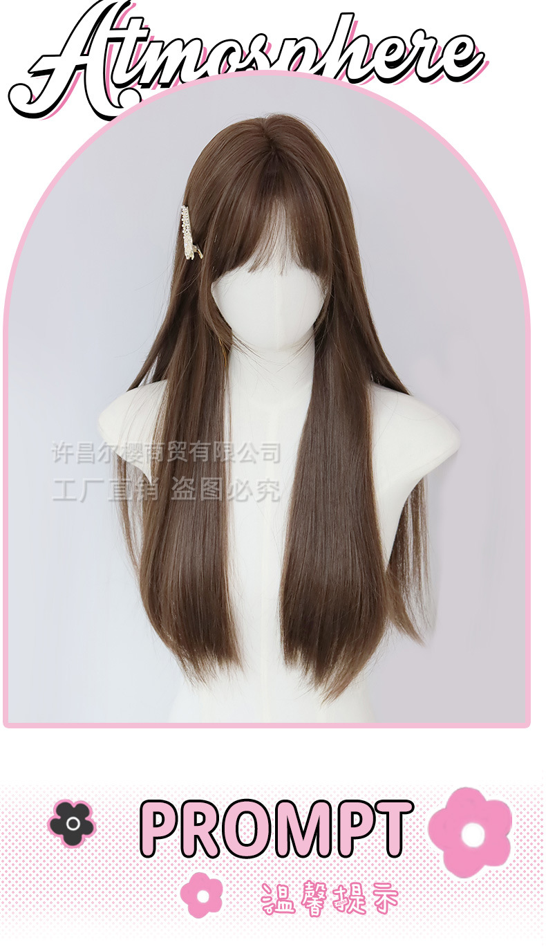 桜のかつらの女性の日常のネットの蜜の茶色の斉前髪の長いまっすぐな髪の韓系の甘い自然jkの全体のカバーのかつら