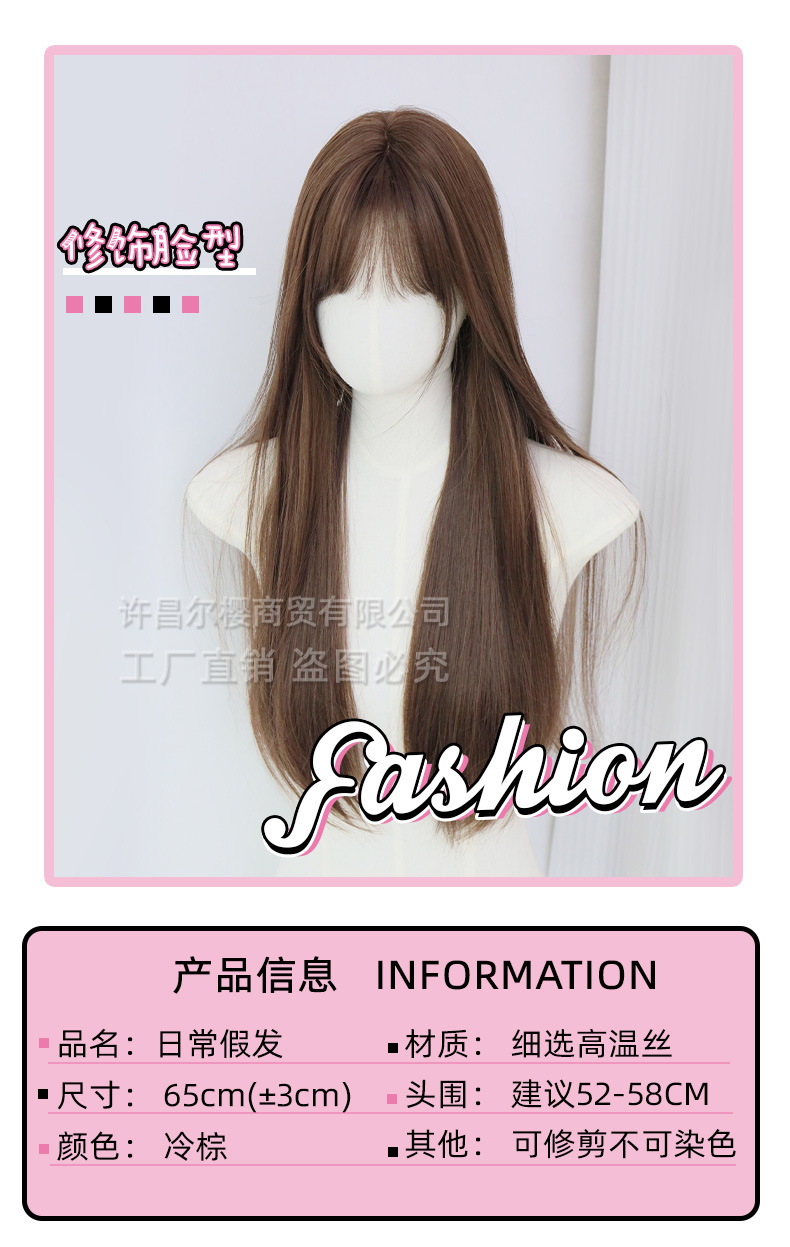 桜のかつら冬の新型女性は自然にリアルな前髪橘茶色のロングストレートの丸い顔をしています。