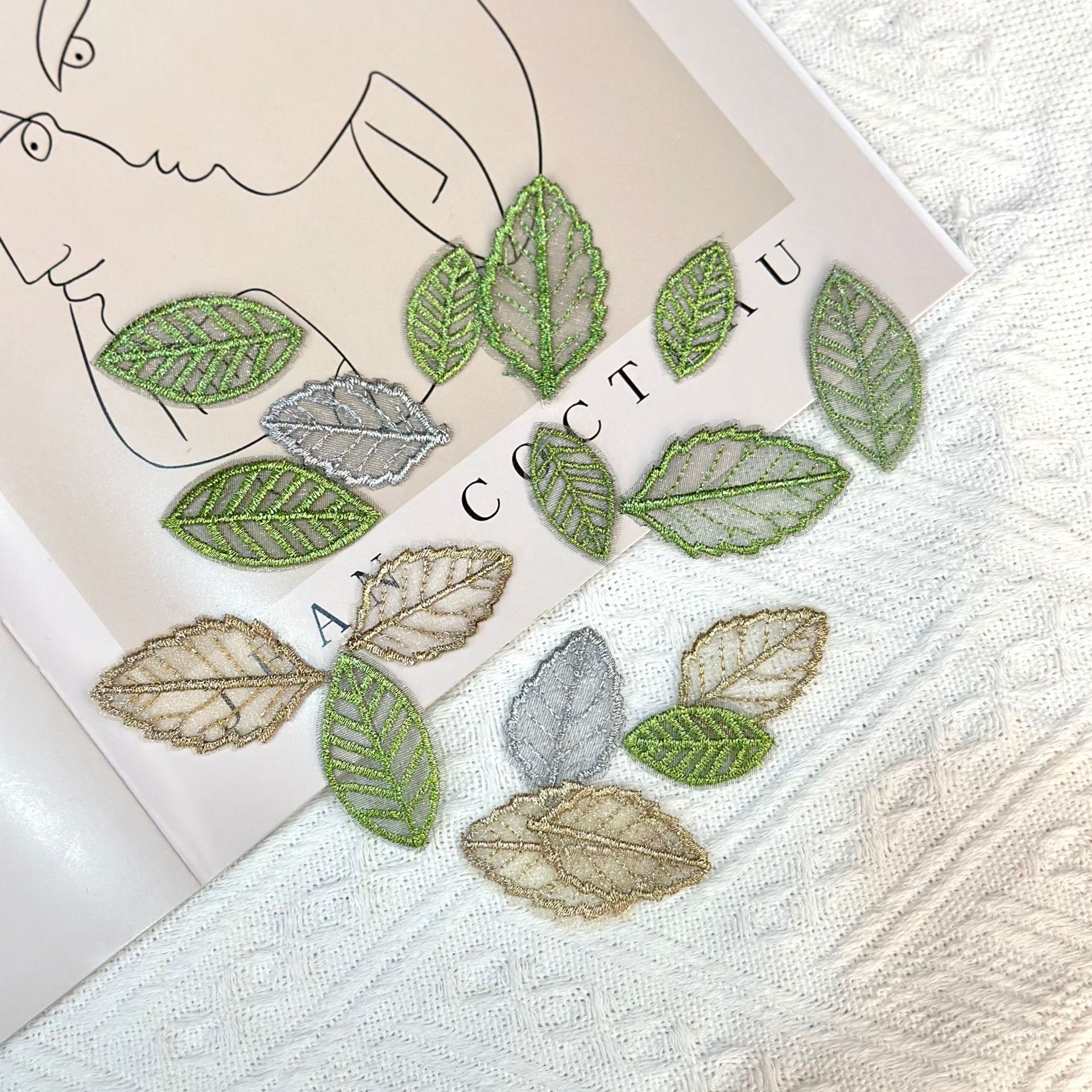 網紗金銀線刺繍木の葉レース緑葉多色diy韓国版手作りアクセサリーアクセサリー髪飾り