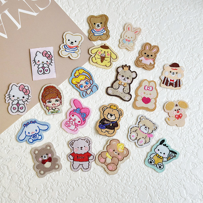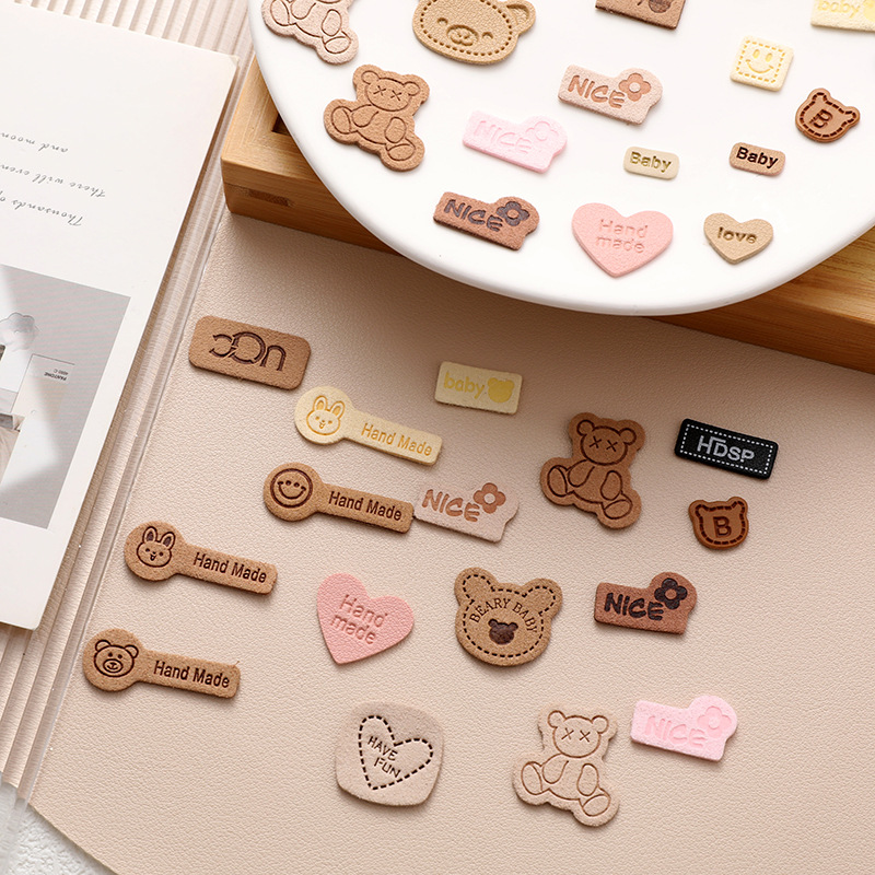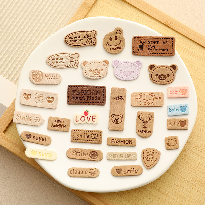 韩系简约小熊小狗布标diy手作装饰包包鞋帽袜口发饰布贴布艺标签