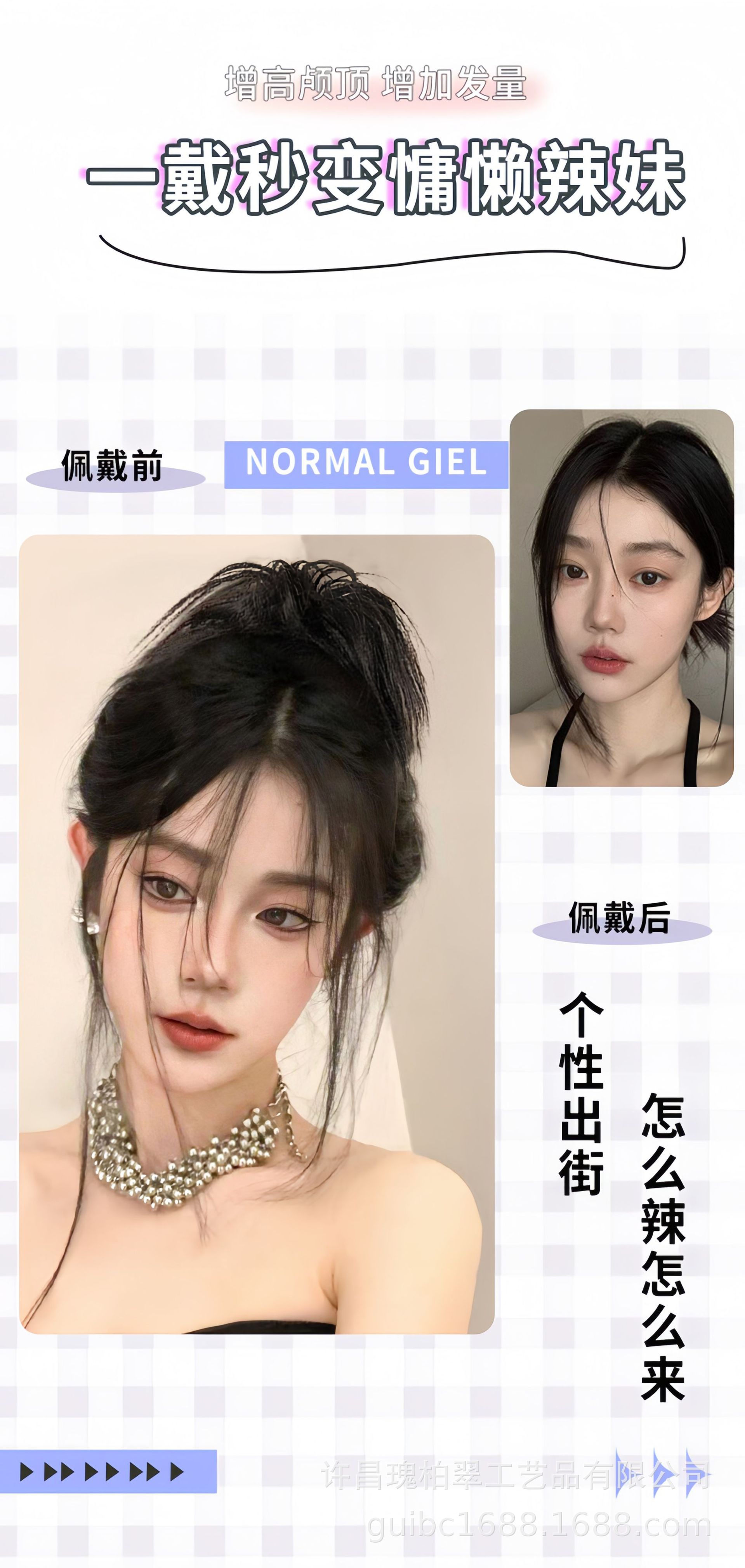 かつらのクッションの髪の女性の増発量は高くて、頭の頂を補って両側のふわふわしています。