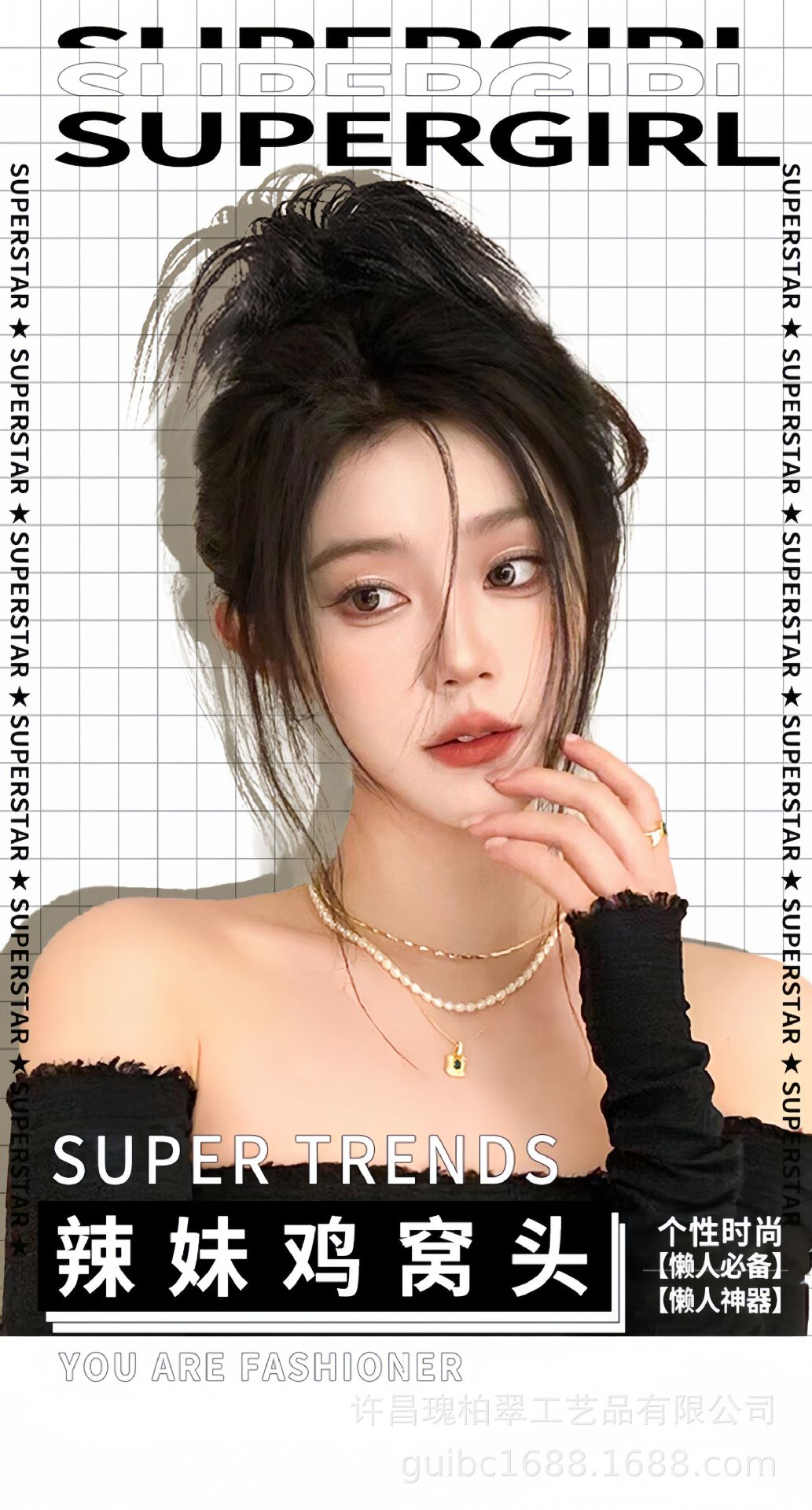 鶏の巣の頭はかつらをつかんでふわふわしています。