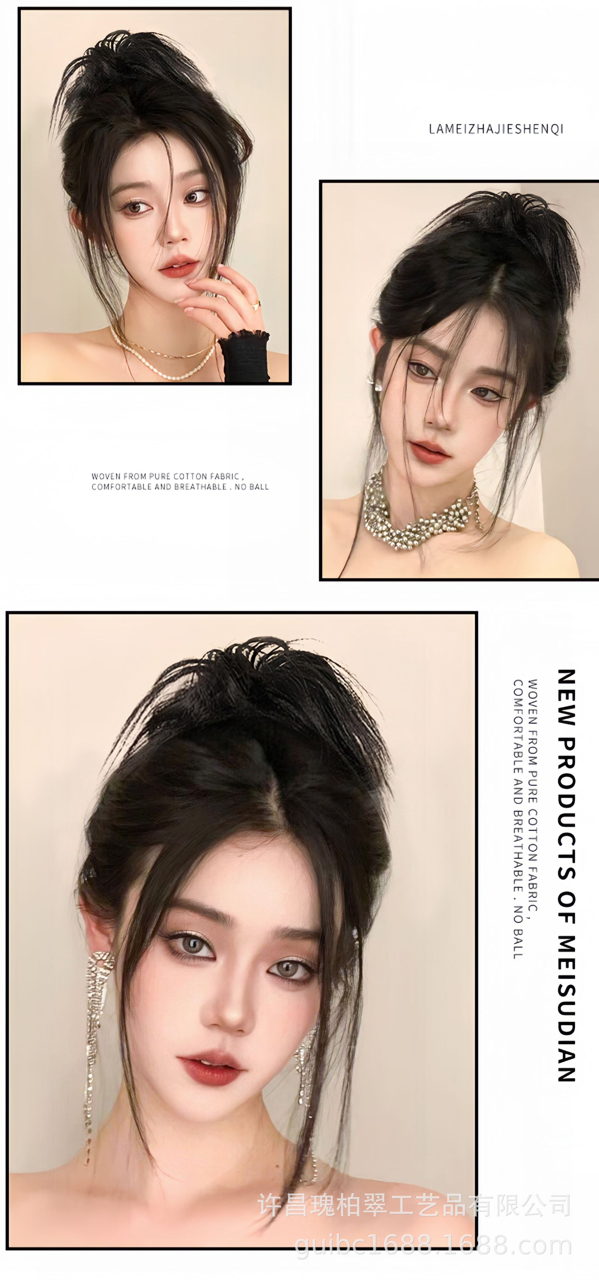 女性用ツイストミートボールヘアウィッグ、模擬ヘアつぼみヘアアーティファクト、後頭部用ふわふわクリップ、高級ウィッグバッグ