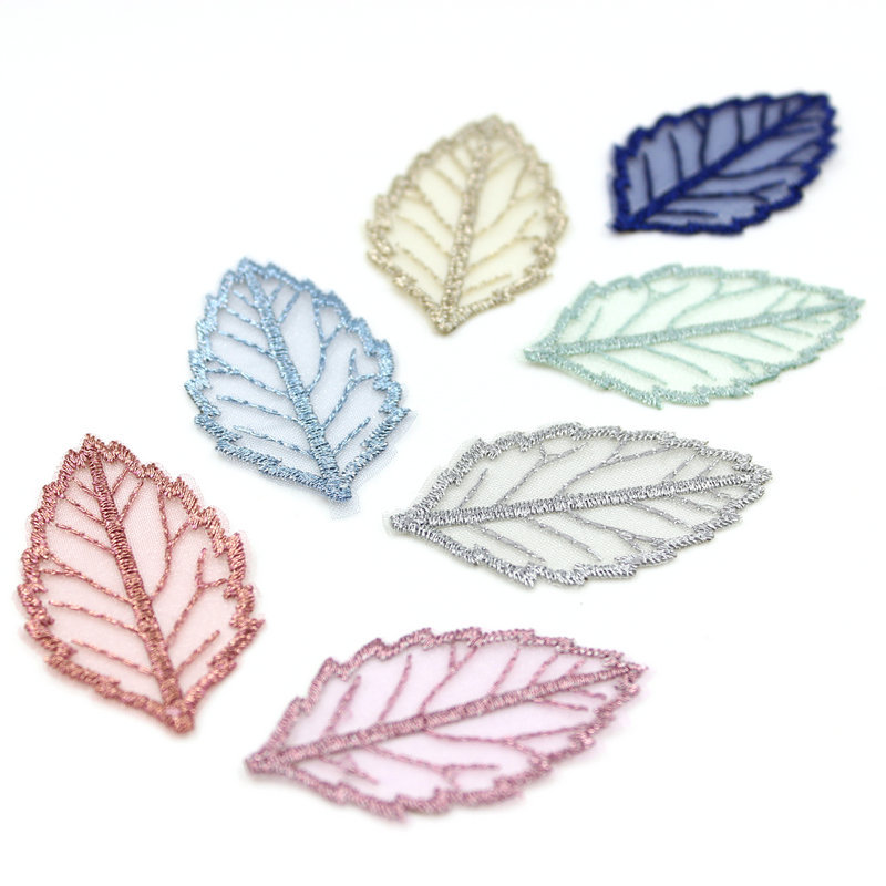 メッシュ金銀糸刺繍葉レース緑の葉マルチカラー diy 韓国スタイル手作りアクセサリー衣類アクセサリーヘアアクセサリー