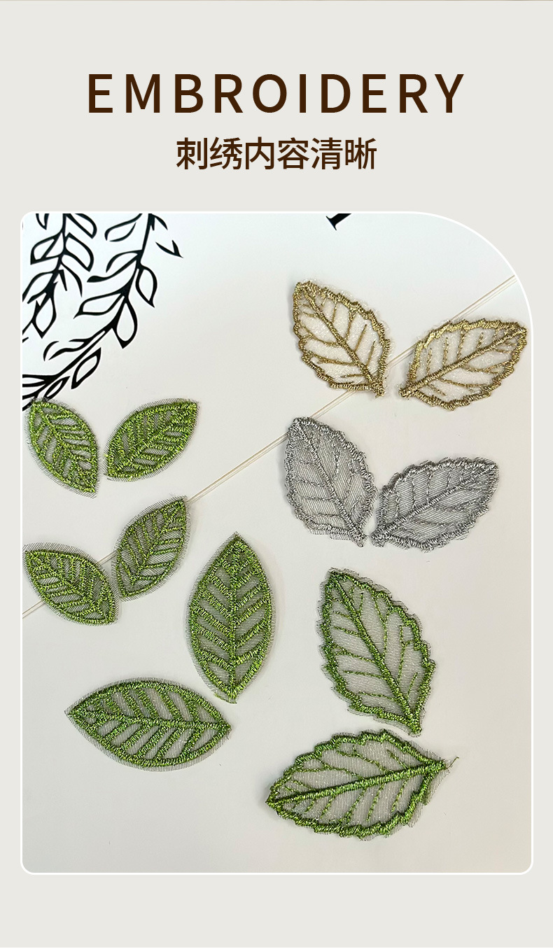 银丝小清新树叶刺绣电脑绣花贴熨烫汉服辅料包包DIY装饰背胶补丁