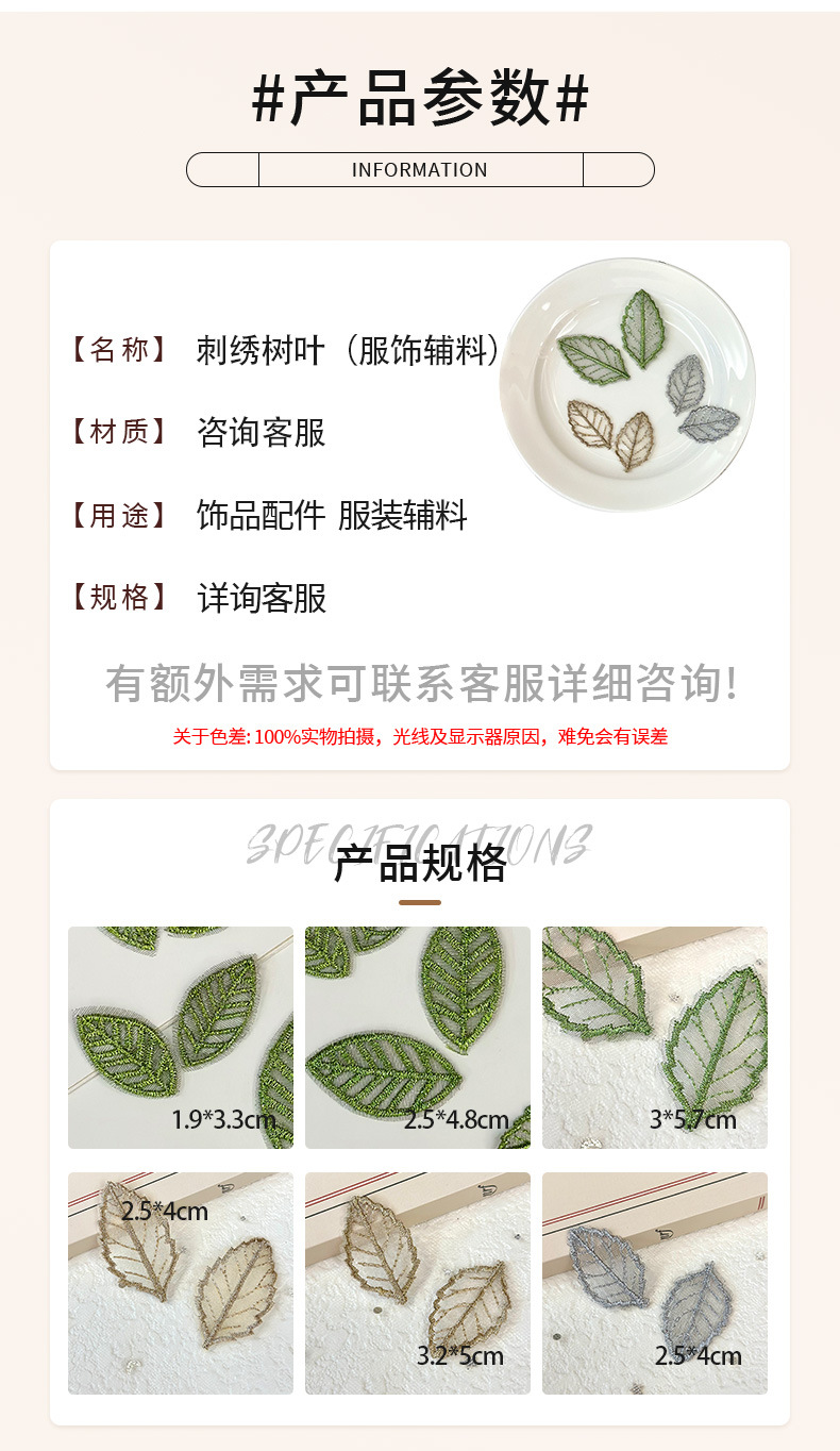 金銀線刺繍木の葉レース単色葉diy韓国版手作りカーテン布芸補助材料部品卸売り