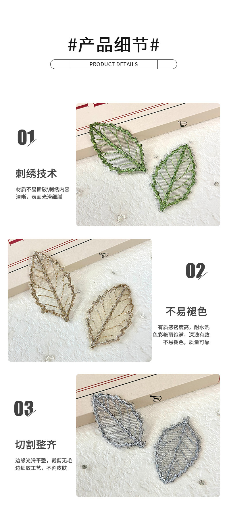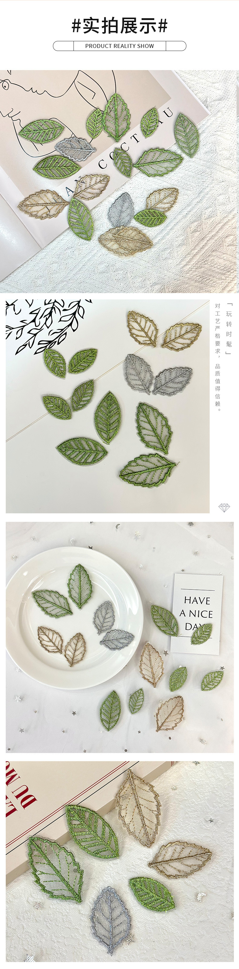 金銀線刺繍薄緑色木の葉レース単色ミニ小葉diy韓国版手作り髪飾り部品