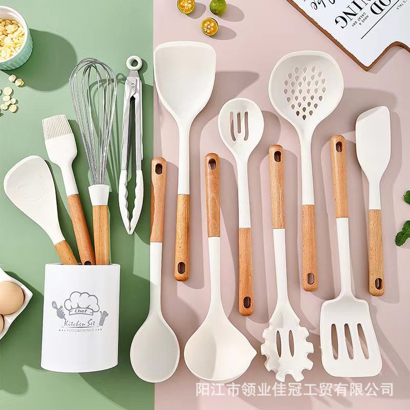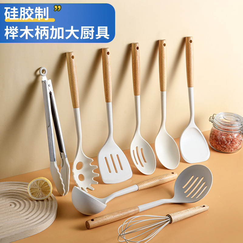 クロスボーダー木柄シリカゲル調理器具シリカゲルシャベルスプーン炒め料理鍋シャベルキッチンキッチンスプーン調理調理器具シャベルセット