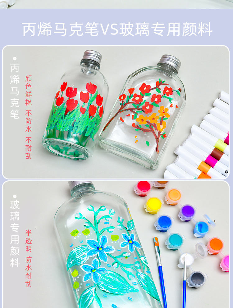 子供手作りDIY手描きガラス瓶材料包彩色落書き創造絵花瓶幸運星瓶