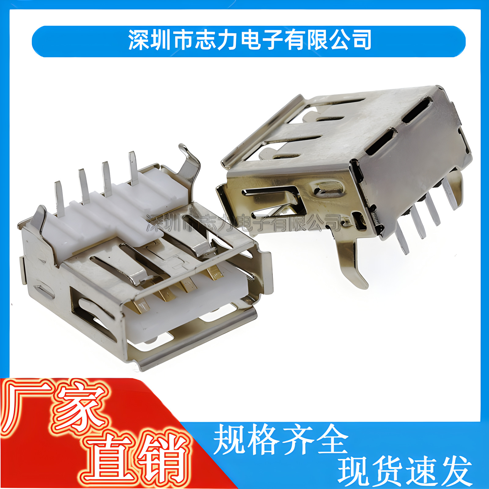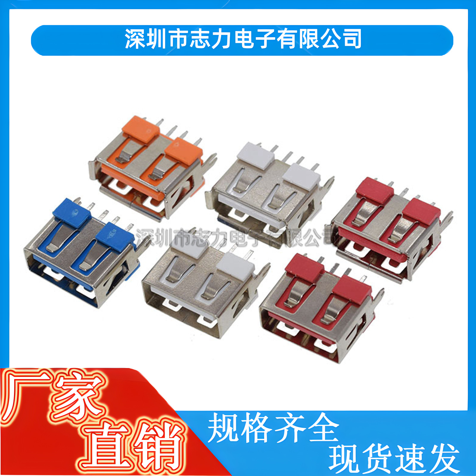 Usb母座短体180度直挿平口巻きusb 0コネクタ4脚縦型ボード魚叉足4p