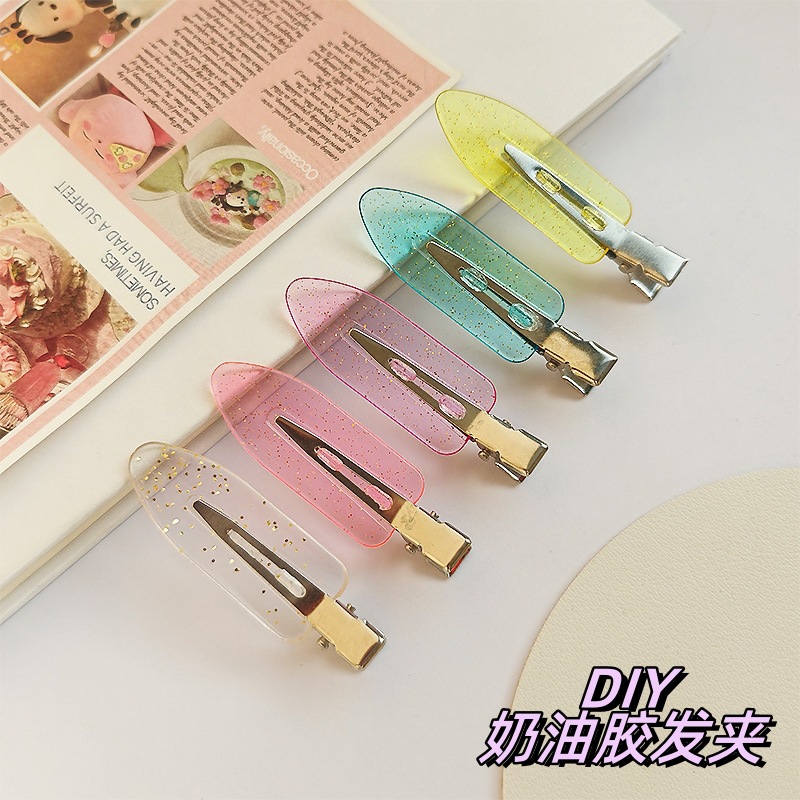 クリームゴムアクセサリー透明ヘアクリップdiy材料無痕クリップ甘いサイドクリップ前髪クリップ子供手作りヘアアクセサリー