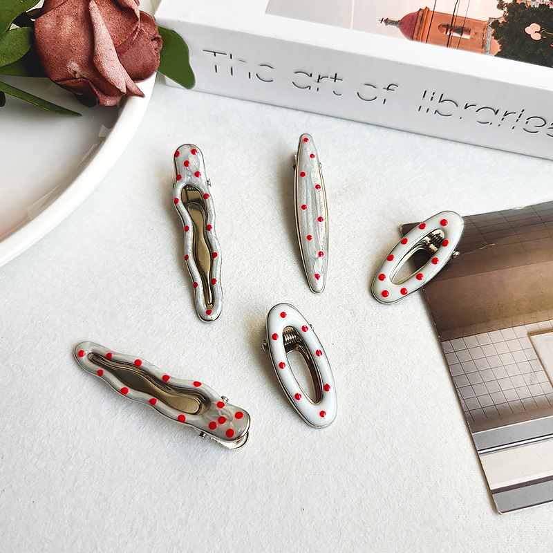 2025年新作ガールズ水玉アヒル口クリップ赤と白のヘアアクセサリー多用途サイド前髪ヘアピンハイエンドヘアピンヘアアクセサリー
