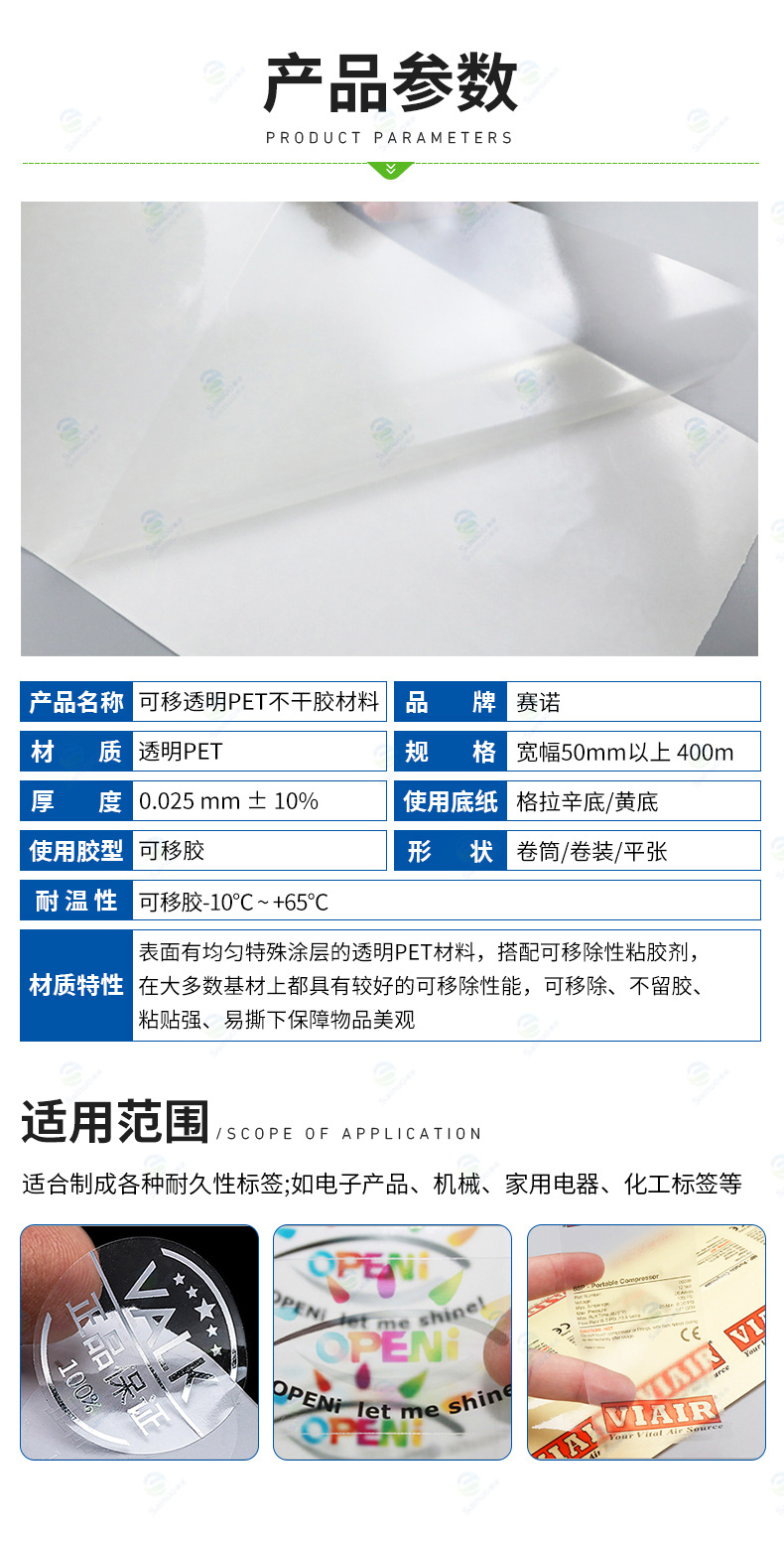セノウォーターラベル特殊合成紙粘着材料防水性と耐引裂性透明底合成紙粘着材料
