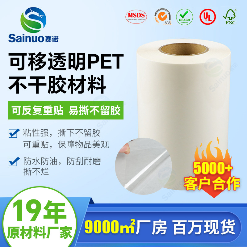 剥がせる透明PET粘着素材、繰り返し貼り直し可能、糊残りなし、透明ドラゴン粘着素材卸売