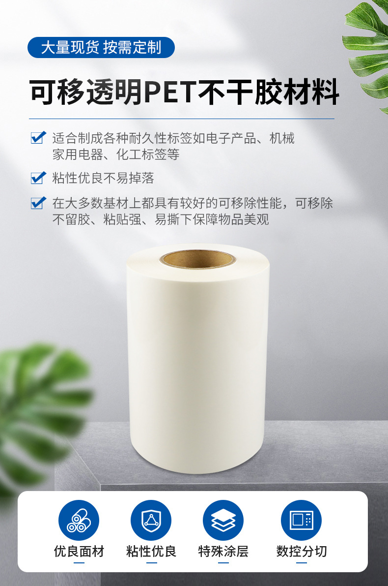仕様とモデル 25#透明PET(イエロー台紙) 再剥離可能; スリット加工の際は、ご希望のサイズをご指定ください。,25 # 透明PET水性糊、黄色ベース。カットをご希望の場合は、サイズをご指定ください。,25#透明PETホットメルト接着剤、黄色の背景、カットする際はサイズにご注意ください。,25#透明PET油性糊 黄色地; スリット加工の際は、サイズをご指定ください。
