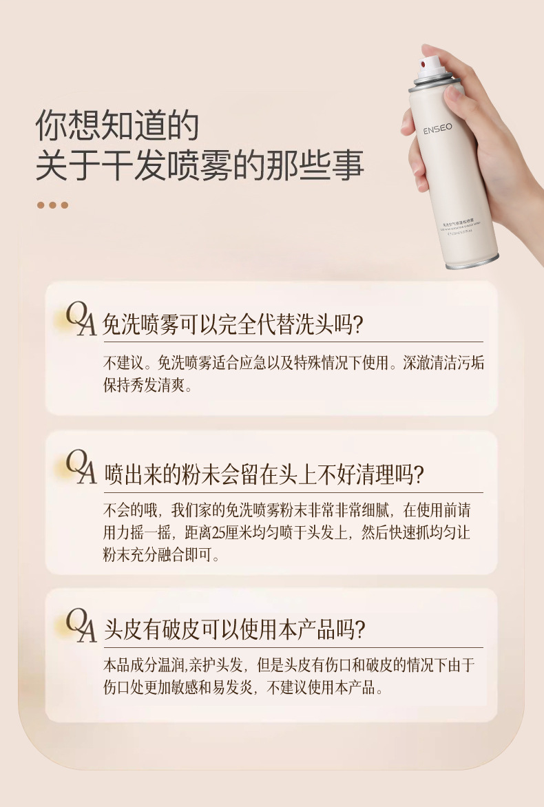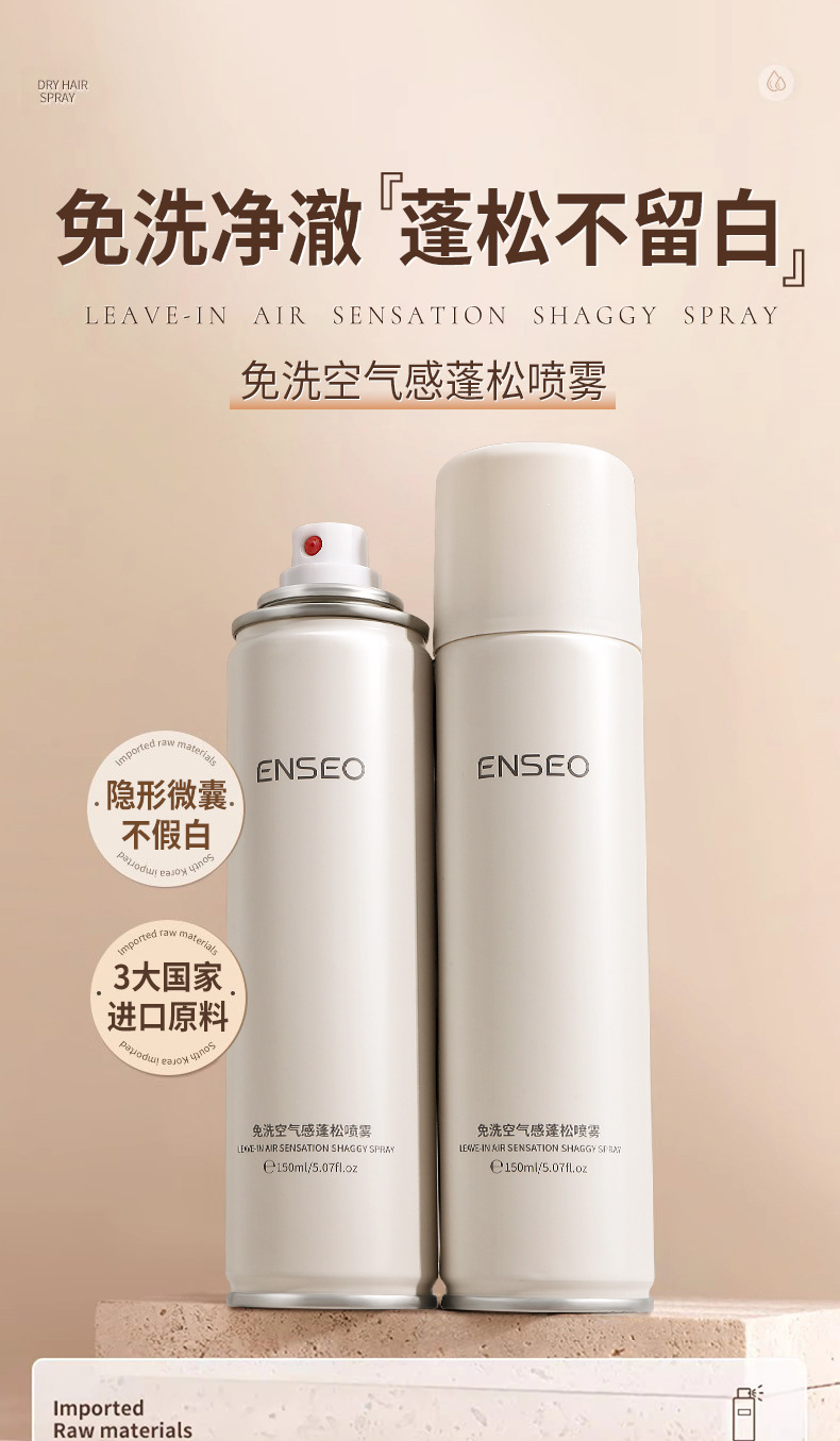 ENSEO ノーウォッシュ ドライ ヘア スプレー エアリー ホワイト ドライ ふわふわ オイル コントロール スプレー Douyin 同じスタイルのヘア シェーピング