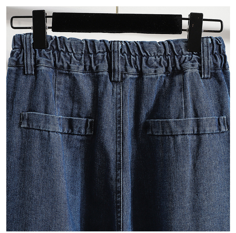 無地デニムウォッシュ秋夏服大きいサイズファッショナブルなデザイン少し太くてスリムなデニムスカートレディースロングその他
