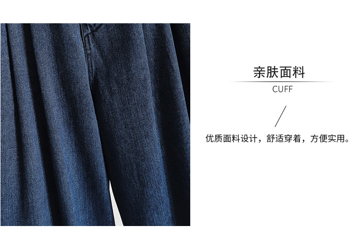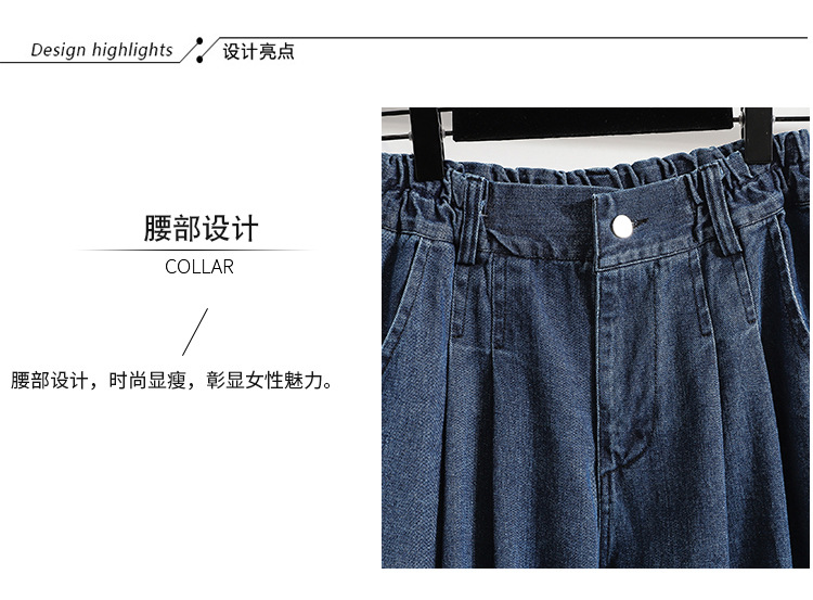 实拍宽松大码阔腿裤裙松紧腰半身裤长款七分裤BF休闲时尚牛仔蓝色