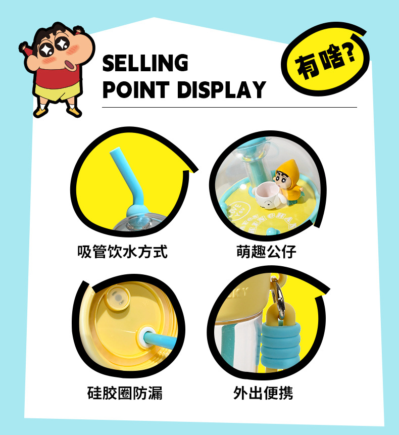 ストロースポーツ大容量カップクレヨンしんちゃんシュートカップ男女学生高颜値携帯ストレートカップ