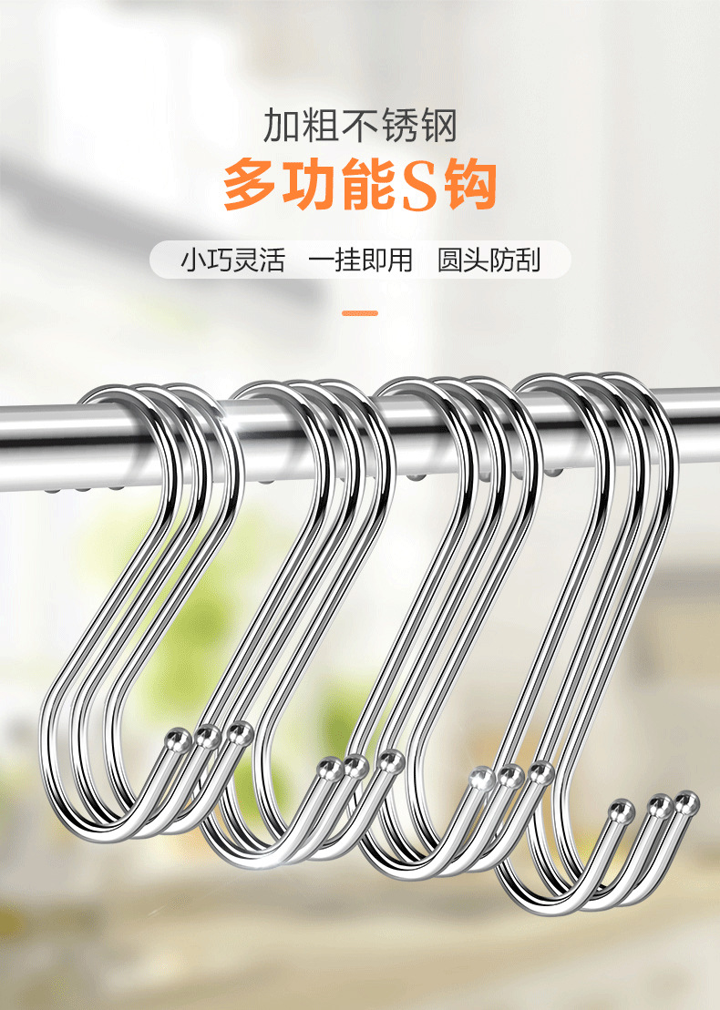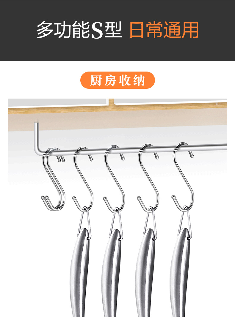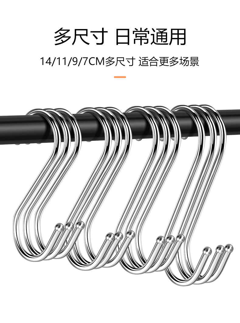 ステンレス製S字フック、キッチン用シングルフック、多機能フック、横棒フック、厚型S字フック、卸売
