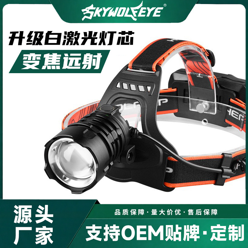 強い光の超明るい白レーザー伸縮ズームヘッドランプの点検灯をつけています。