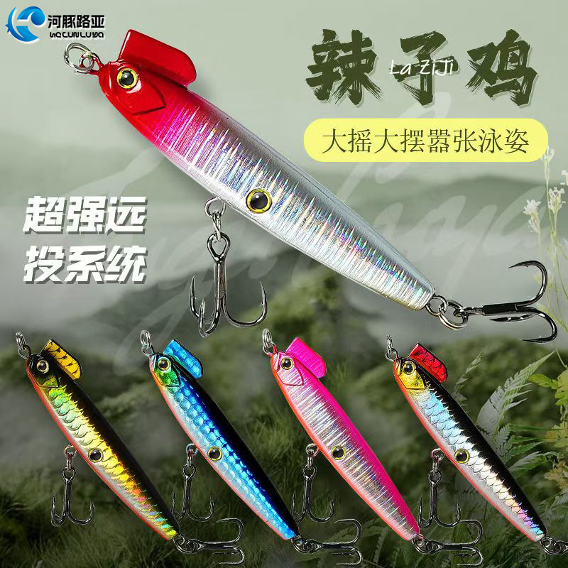 遠投用の水中ペンシルルアー、シェイキングと沈下、岸投げ、淡水の口が開いたシーバス、バイオニックルアー