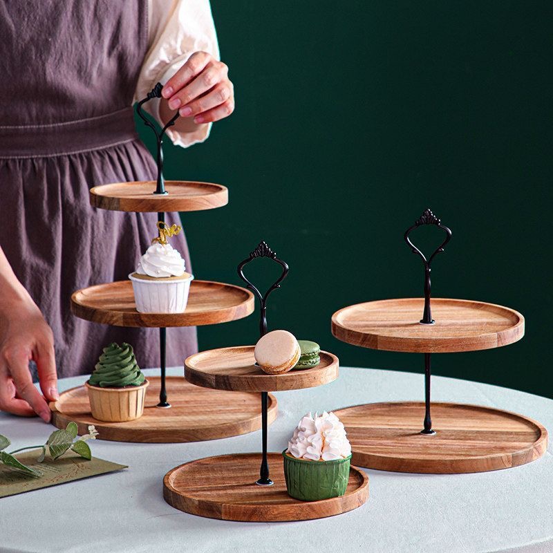 新製品 クロスボーダー 二段ケーキディスプレイスタンド 木製デザートテーブル フルーツプレート 高級感 サンプルプレート キャンディプレート