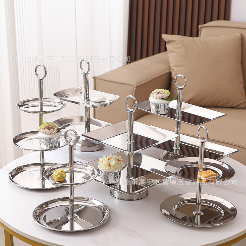 不锈钢串盘两层茶点蛋糕托盘前台糖果盘酒店多层点心盘玄关钥匙盘